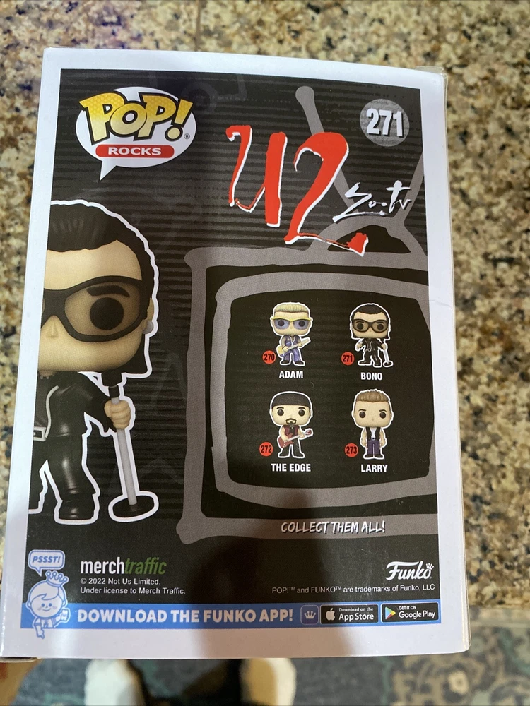 This Funko Pop Rocks vinyl figure features the iconic U2 frontman, Bono. With his signature sunglasses and flamboyant stage outfit, this Pop! figure is a must-have for any fan of the band or collector of music memorabilia. Made from high-quality vinyl, this figure stands approximately 3.75 inches tall and comes from the Funko collection. Perfect for display on a desk or shelf, this Funko Pop Rocks U2 #271 BONO vinyl figure is a unique addition to any collection. Whether you're a die-hard U2 fan or simply appreciate the artistry of this collectible, this figure is sure to impress. Don't miss your chance to own a piece of music history with this stunning Bono Pop! figure.