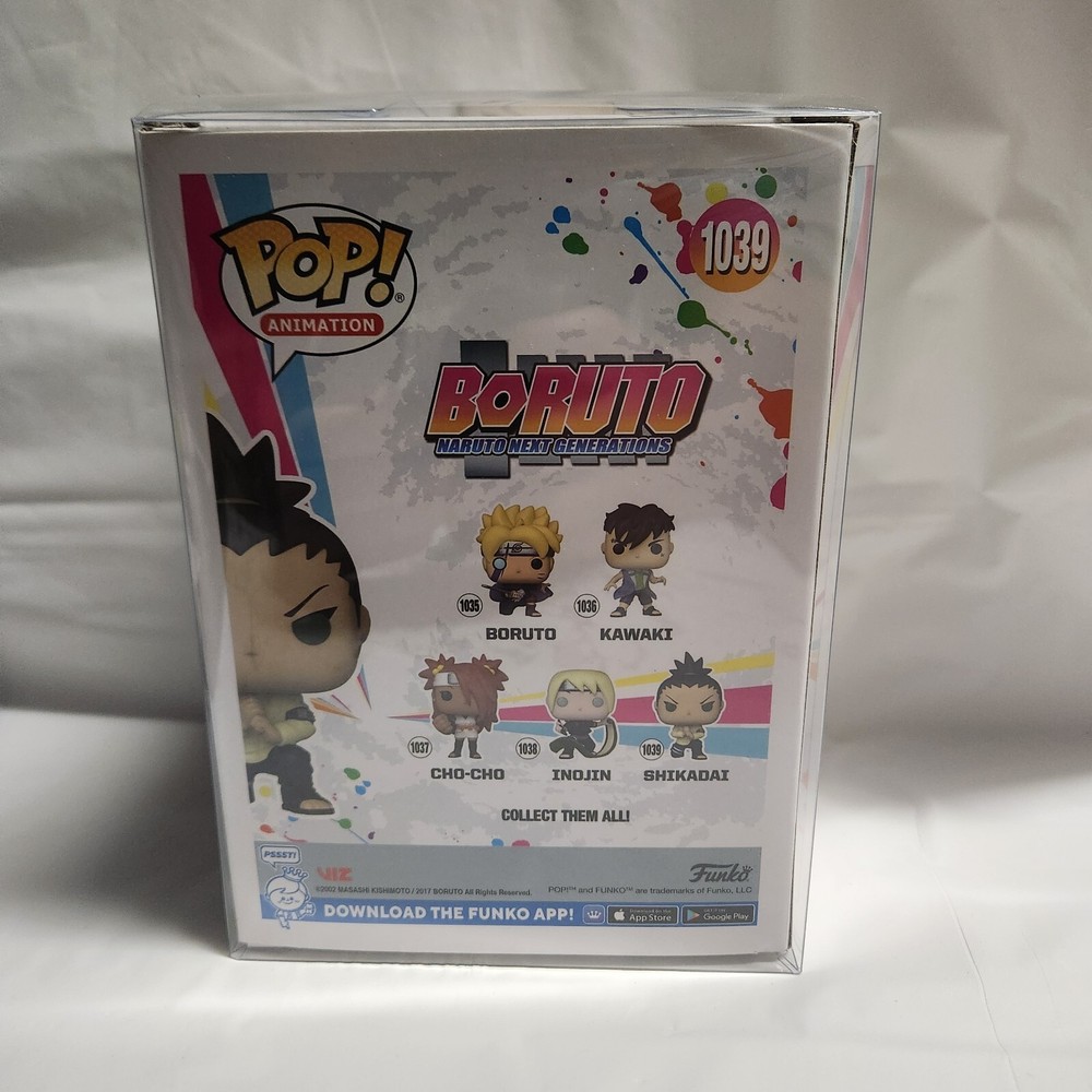 This Funko Pop Vinyl figurine features Shikadai from the anime series Boruto: Naruto Next Generations. The multicolor vinyl figure is part of the Shonen Jump series and is suitable for ages 3 and up. It is model number #1039 in the Pop Vinyl collection released in 2021. Perfect for fans of the Boruto franchise and collectors of anime merchandise. This pop comes with a protector. The box is unopened and free of any major damage.