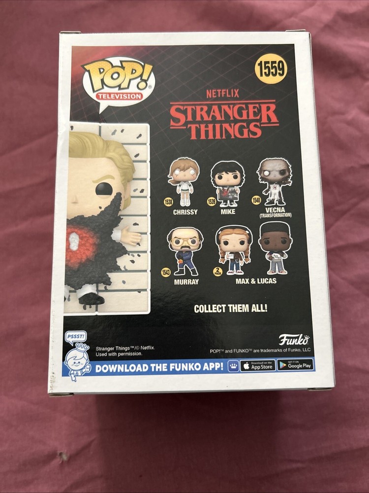 The Funko Pop! Vinyl figure is part of the Stranger Things series, featuring the character Vaporizing from the popular TV show. This exclusive figure was released at San Diego Comic Con and available at Target stores. With a box number of 1559, this collectible is made of vinyl material and is part of the Funko Pop! Vinyl product line, capturing a memorable moment from the Stranger Things franchise.