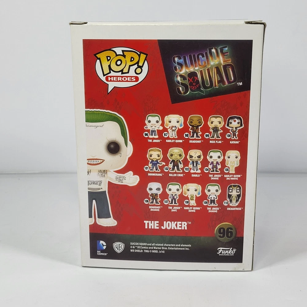 Features: Shirtless Manufacturer Part Number: 8659 UPC: 849803086596 Country/Region of Manufacture: Vietnam Rarity: Common Modified Item: No Type: Vinyl Figure Character: Joker MPN: 8659 Packaging: Original (Unopened) Product Line: Pop Material: Vinyl Manufacturer: Funko gtin13: 849803086596 Franchise: Suicide Squad Time Period Manufactured: Modern (1970-Now) Year: 2016 Brand: Funko Movie: The Suicide Squad Exclusive Event/Retailer: None