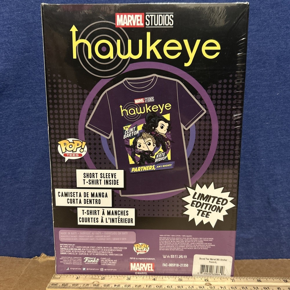 This limited edition Funko Pop! TEES Hawkeye T-shirt is a must-have for any Marvel Studios fan. The shirt features a vibrant multicolor design with the iconic Hawkeye character. Made from 100% cotton, this unisex T-shirt is perfect for everyday wear and all seasons. With its short sleeves and comfortable fit, this XL size T-shirt is a great addition to any wardrobe. Whether you're a Marvels Avengers enthusiast or just love the Hawkeye character, this T-shirt is a great choice. Get yours today and show off your love for Marvel Studios!