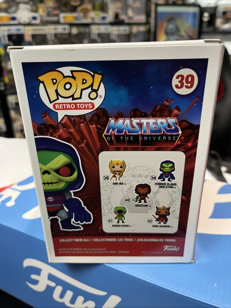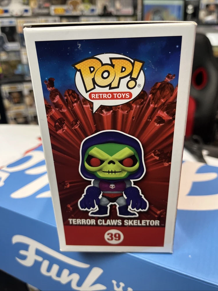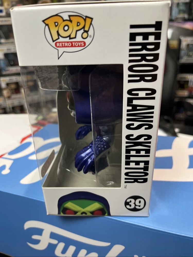 The Funko Pop! Terror Claws Skeletor #39 is a metallic vinyl figure from the Masters of the Universe Series 7. This Target exclusive collectible features Skeletor, a character from the Masters of the Universe franchise, in a retro toy design. The figure comes in its original packaging and is part of the Pop! Vinyl product line, making it a sought-after item for collectors of television-themed memorabilia.