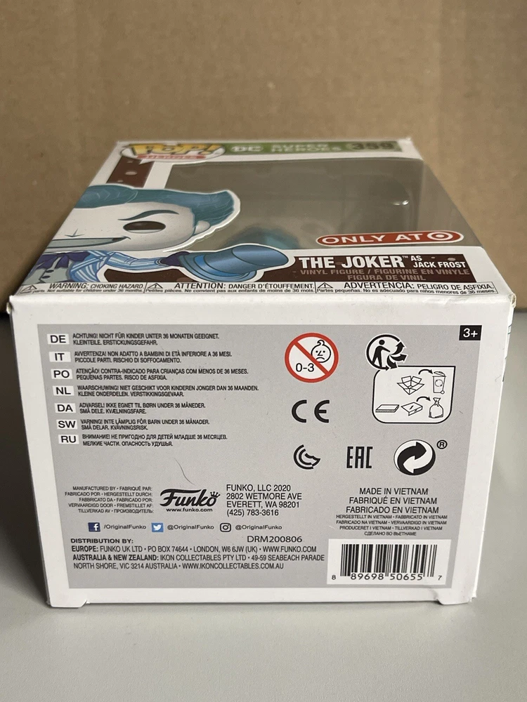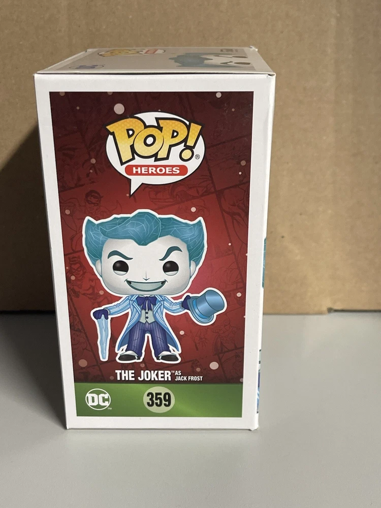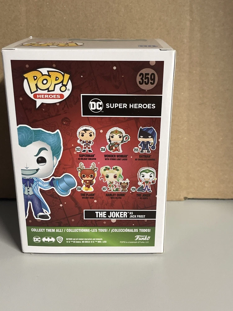 Introducing the Funko Pop The Joker as Jack Frost 359 DC Super Heroes Target Exclusive Figure! This exclusive vinyl figure is a must-have for any DC Universe fan. The figure stands at 4 inches tall and features multicolor details. It comes in its original packaging, unopened and ready to display. This Pop! Vinyl figure is part of the DC Comics Holidays S1 series and is a perfect addition to any collection. The figure is customized with the signature Funko touch and is made of high-quality vinyl material. Don't miss out on the chance to own this exclusive item from Target.