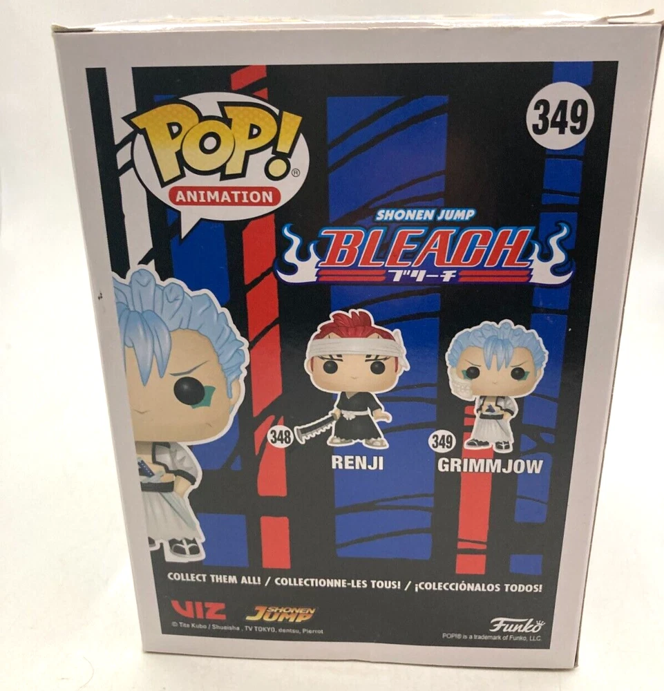 Funko Pop! Vinyl: Bleach - Grimmjow #349 VGC. Box opened and has light wear, including small crease to lid. Refer photos. Free shipping. Funko will be placed in protector and secured.