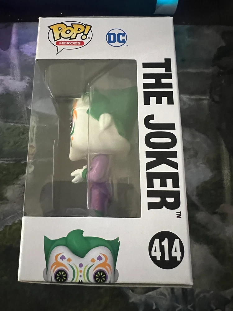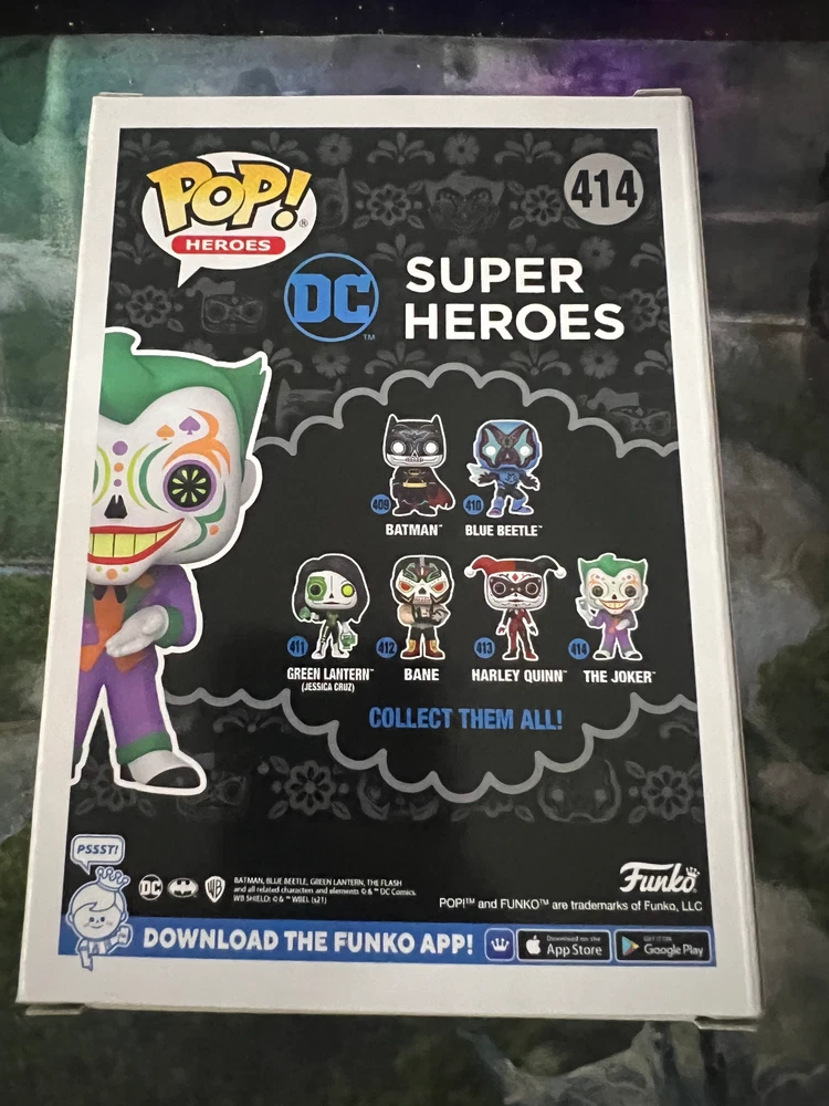 Dive into the vibrant DC Universe with the Funko Pop! Vinyl: DC Universe - The Joker #414. This collectible figure captures the iconic villain in his Dia De Los DC attire, bringing a touch of the comics' festivity to your shelf. The Joker is rendered in Funko's signature stylized form, making it a must-have for fans of the franchise and Pop! Vinyl collectors alike.Crafted from durable vinyl material, this figure stands out with its attention to detail and vibrant colors that celebrate the character's role in the comic book realm. Whether you're a dedicated follower of the series or a casual collector, this piece serves as a playful nod to the Joker's legacy within the expansive DC Universe.