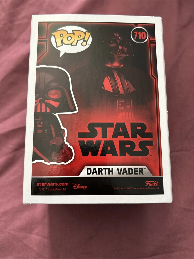 The product is a Funko Pop! Vinyl figure of Darth Vader from the Star Wars collection. This specific version was released as an exclusive for San Diego Comic Con, making it a highly sought-after collectible. The figure is part of the Pop! Vinyl series, featuring a design of Zeus in a sci-fi movie theme. This Darth Vader figure is numbered 710 and is made of vinyl material. Additionally, it is a vaulted piece, adding to its rarity and value among Star Wars fans and collectors.