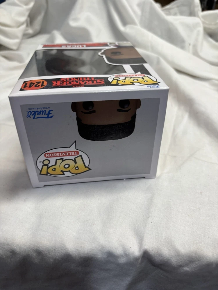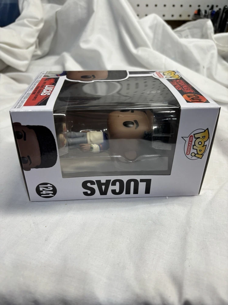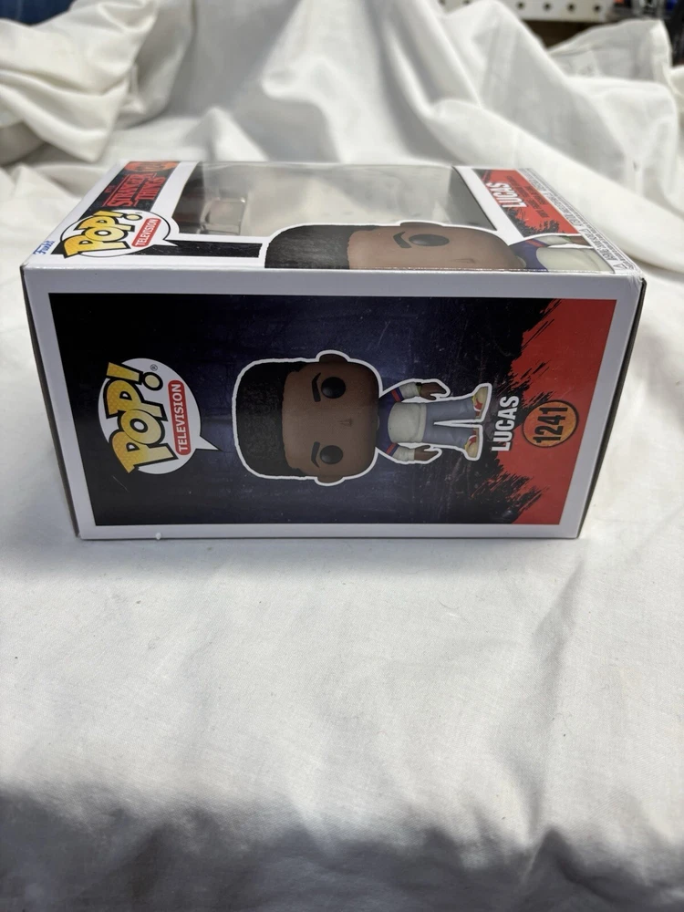 The product is a Funko Pop vinyl figure featuring Lucas Sinclair from the TV show "Stranger Things." This collectible figure is part of the Pop! Vinyl product line and comes in box number 1241. As a fan favorite character from the popular series, Lucas Sinclair is depicted in vinyl form with attention to detail, making it a must-have for fans of "Stranger Things" and collectors of Funko Pop figures.