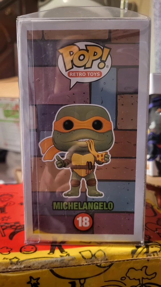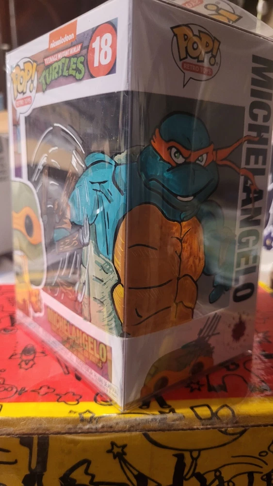 Custom art work michelengoThis Funko Pop! Vinyl figure features the beloved character Michelangelo from the Teenage Mutant Ninja Turtles franchise. The figure is part of the Retro Toys S2 series and the box itself was designed by Meraki Designs. It is made of high-quality vinyl material. It is a great addition to any collection and is perfect for fans of the franchise. The Funko Pop! Vinyl figure is a must-have for any collector and is sure to please any fan of the Teenage Mutant Ninja Turtles.