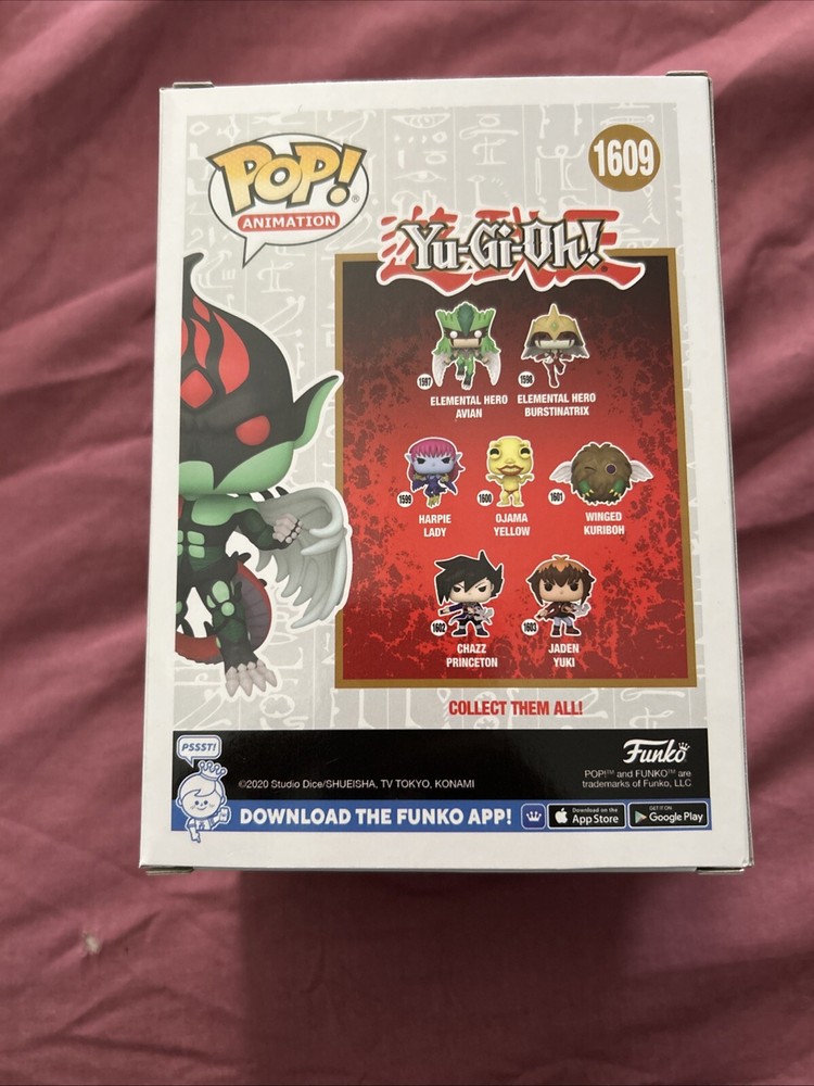 The Funko Pop! Vinyl figure features Elemental Hero Flame Wingman from the Yu-Gi-Oh! series. This exclusive figure was released at the San Diego Comic Con and Hot Topic, part of the Heroes collection. It is made of vinyl material, showcasing detailed design and vibrant colors, representing the popular anime and manga theme from Yu-Gi-Oh! The box number is 1609, and it is a must-have collector's item for fans of the franchise.
