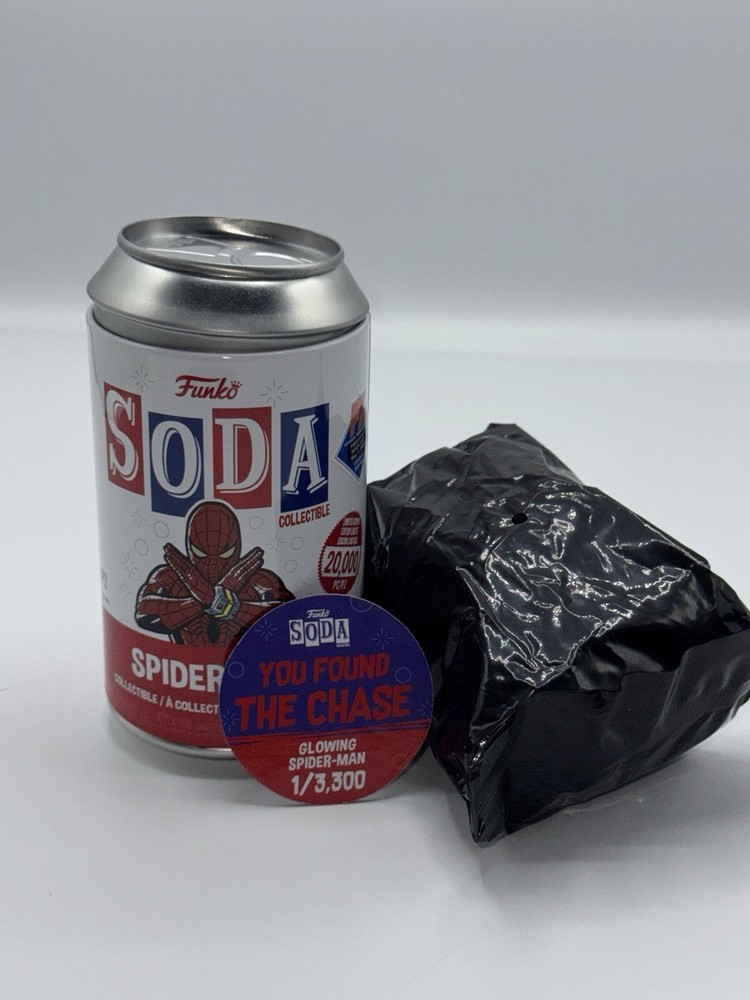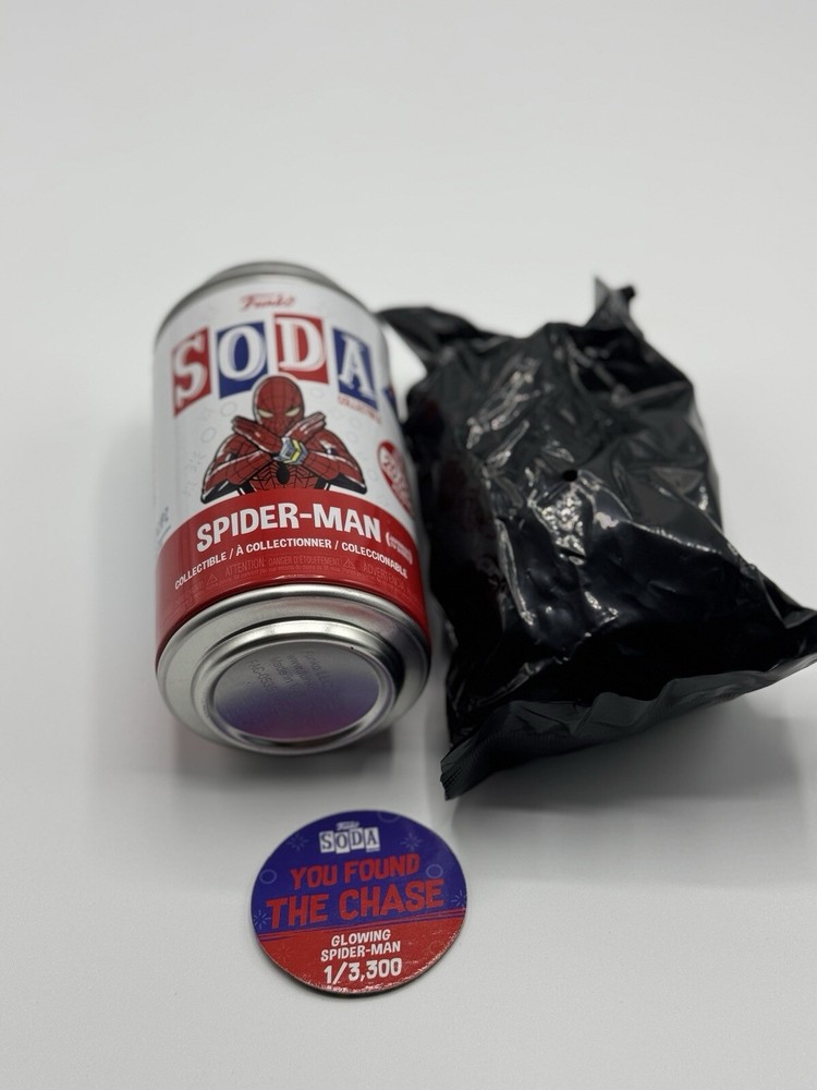 Product Line: Soda TV/Streaming Show: GLOW Type: Vinyl Figure Brand: Funko Character: Spider-Man Features: Chase Model: Funko Soda PX