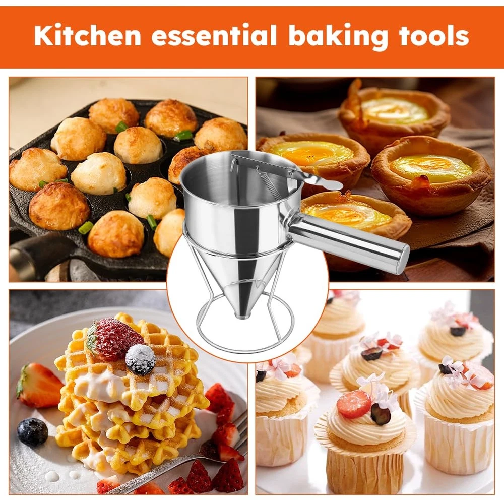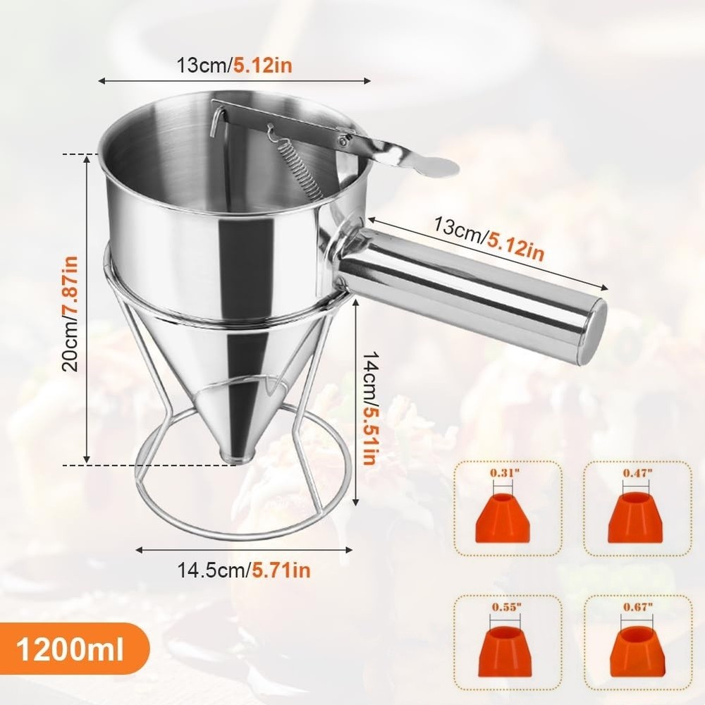 Funnel Dispenser Stainless Steel 1200ML Cone-shaped Batter Pancake Baking Tools