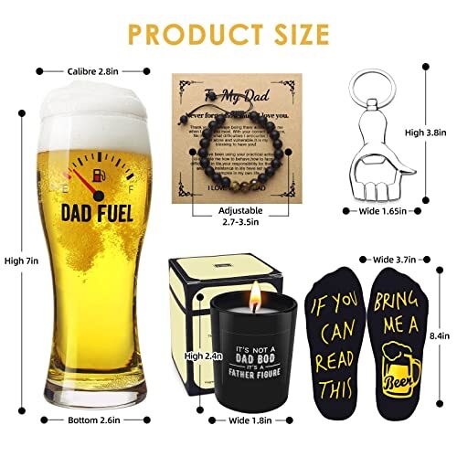 Luka Tech Father‘s Day Gifts for Dad from Son Daughter, Funny Beer Glass 450ml,Unique Birthday Gifts for Dad,Men,Grandpa,Father,Fathers Day If you are looking for dad gifts, this high quality fun beer glass is sure to be your good choice.gift.A great meaningful gift for daddy with funny quote "Dad Fuel." Fun design: These socks feature a fun design , expressing a lighthearted and humorous attitude. This playful design allows you to showcase your sense of humor and personality while wearing socks. These socks are made of high-quality materials that are soft, comfortable, and breathable, keeping your feet dry and comfortable. Bracelet is made of natural tiger eye stone & black agate stone. These natural stones can help relieve stress and protect against negative energies, wearing it will make you feel loved, respected and happy Perfect gifts for your dad on Birthday, Father's Day, Christmas. The bracelet that expresses love tenderly and thoughtfully will surely surprise him and cherish it for a lifetime Pack Include: 1 * Glass Mugs ,1 * 1.8OZ Ntural Soy Candle,1*Beer Opener,1*Pair of socks,1*Bracelet! 100% money back warranty:we will refund full money to you if there any problem with products fathers day beer glass Shipping We offer FREE shipping on all orders! We ship within Three business days of payment, usually sooner. We use a selection of shipping services such as UPS, FedEx, USPS etc. We only ship to the lower 48 states, no APO/FPO addresses or PO Boxes allowed. Local pickups and combined shipping options are not provided at this time. International buyers – please note: Import duties, taxes, and charges aren't included in the item price or postage cost. These charges are the buyer's responsibility. Please check with your country's customs office to determine what these additional costs will be prior to bidding or buying. Order Cancellation Policy * Order Cancellation Policy ** You can return a product for up to 30 days from the date you purchased it. 1. The seller reserves the right to cancel the special case only due to eBay cancellation fee. 2. The decision of seller is the final. 3. The seller will respond to the cancellation request within 2 business days. Please wait for the result of cancellation. 4. In case the cancellation is not completed by some reasons, the buyer can follow the options below to get the refund. 4.1 The buyer can reject the item when it arrives. 4.2 The buyer can send the item back to the seller within 30 days If the buyer receives item (USA Shipment ONLY). The seller will provide the FREE return label to the buyer when the buyer opens " Return Item" case on eBay by using the reason as "Change my mind" ONLY. 5. When buyer has placed the order. The order will be processed and completed by automatic warehouse system within 5 minutes. In case that buyer sends the cancellation request after 5 minutes of placing the order, the request will be rejected. **Sending direct message to cancel the order is not allowed for every case.* Return Policy - If buyer would like to return the items for refund or replacement, please CONTACT SELLER to receive the free return label from seller. The refund or replacement will be processed with the tracking number of return label which is provided by seller only. The other ways of return which are not approved by seller will not be processed for the refund or replacement. Return You can return a product for up to 30 days from the date you purchased it. Any product you return must be in the same condition you received it and in the original packaging. Please keep the receipt. Payment We accept payment by any of the following methods: eBay Payments Please pay as soon as possible after winning an auction, as that will allow us to post your item to you sooner! Feedback Customer satisfaction is very important to us. If you have any problem with your order, please contact us and we will do our best to make you satisfied. Contact Us If you have any queries, please contact us via ebay. We usually respond within 24 hours on weekdays. Please visit our eBay store to check out other items for sale! Thank you for shopping at our store.