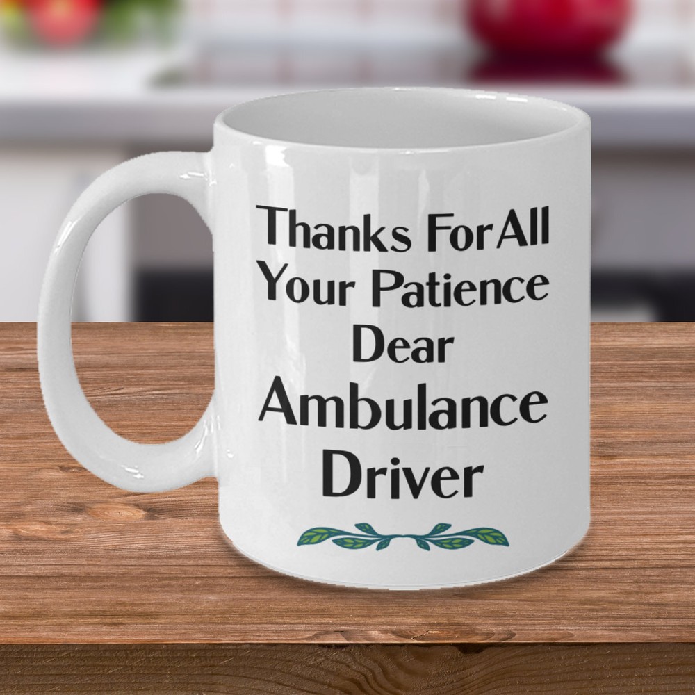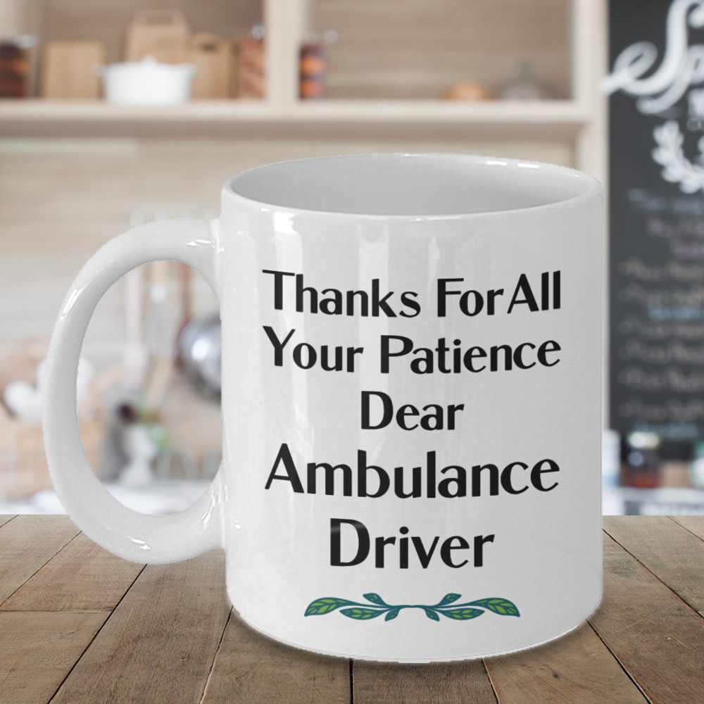 Dear Ambulance Driver Mug Funny Gift Coffee Mug Thank You Gift For Friend Product Details.. This high quality 11oz. ceramic white mug has a premium hard coat that provides crisp and vibrant color reproduction sure to last for years. Perfect for all hot & cold beverages. The highest quality printing possible is used. It will never fade no matter how many times you wash it. Material: 100% Ceramic. Print both sides. Dishwasher and Microwave Safe. High Gloss + Premium White Finish. Printed in the U.S.A. Personalized & Custom. We support personalized and custom mug to add custom, when placing an order, you can add notes to the "order note" in shipping address section. Also you can contact us directly via message. Shipping Info. Ready to ship in 1 to 2 business days, All products are made-to-order and proudly printed in the United States. Shipped by USPS and DHL, You will receive your order in 5-7 days. Replace & Refund. All products are defective during shipping broken, chipped will be replaced free of charge. You are not satisfied with the product, we will refund 100% money to you. If any other issues arise, please do not hesitate to message, we would be more than happy to assist you.
