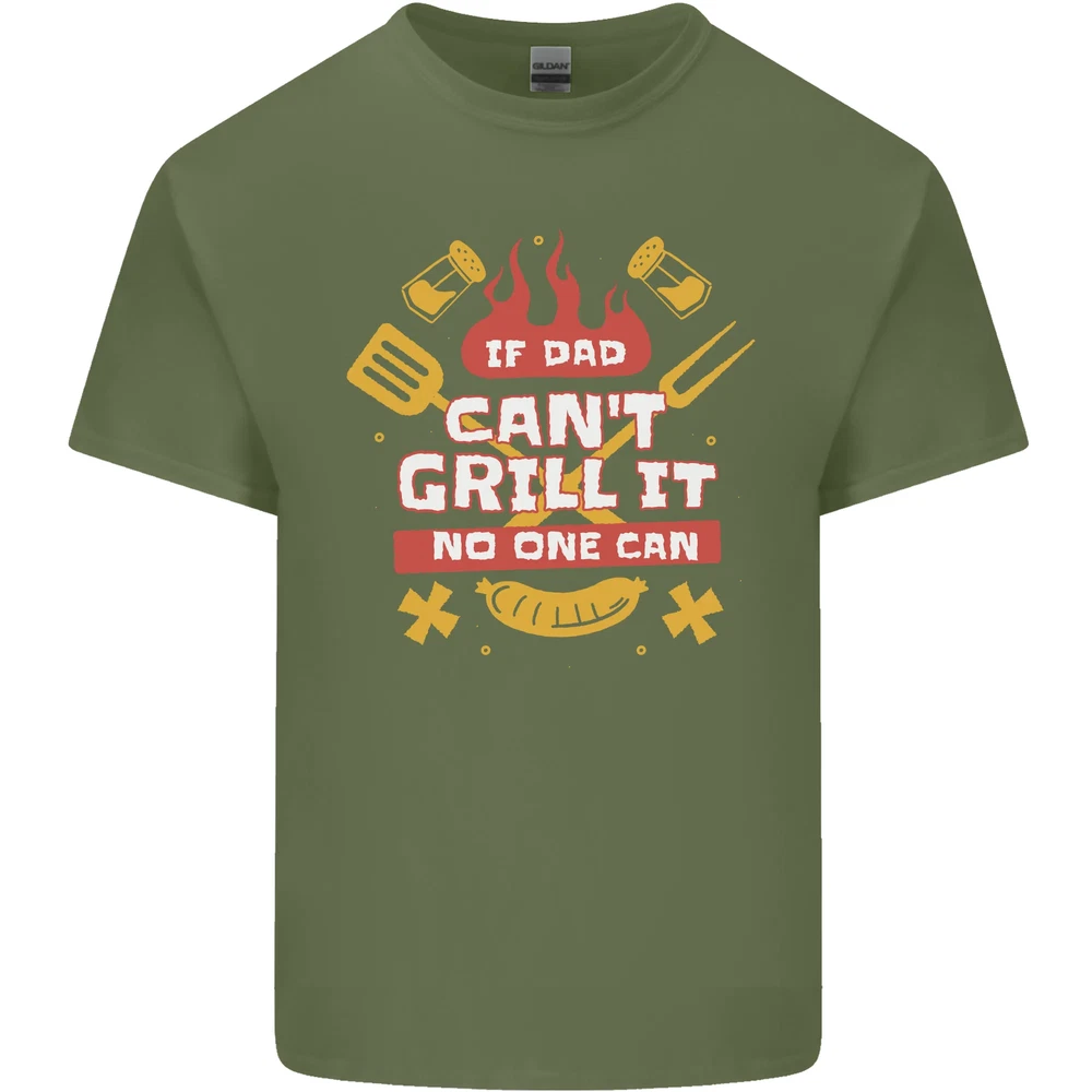 Funny BBQ If Dad Cant Grill It No One Can Mens Cotton T-Shirt Tee Top