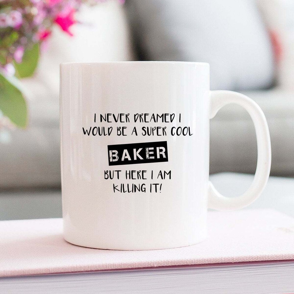 Coffee Mug Baker Mug Bakers Mug Baker Gift Baker Gift For Baker Funny Mug Baking Product Details.. This high quality 11oz. ceramic white mug has a premium hard coat that provides crisp and vibrant color reproduction sure to last for years. Perfect for all hot & cold beverages. The highest quality printing possible is used. It will never fade no matter how many times you wash it. Material: 100% Ceramic. Print both sides. Dishwasher and Microwave Safe. High Gloss + Premium White Finish. Printed in the U.S.A. Personalized & Custom. We support personalized and custom mug to add custom, when placing an order, you can add notes to the "order note" in shipping address section. Also you can contact us directly via message. Shipping Info. Ready to ship in 1 to 2 business days, All products are made-to-order and proudly printed in the United States. Shipped by USPS and DHL, You will receive your order in 5-7 days. Replace & Refund. All products are defective during shipping broken, chipped will be replaced free of charge. You are not satisfied with the product, we will refund 100% money to you. If any other issues arise, please do not hesitate to message, we would be more than happy to assist you.