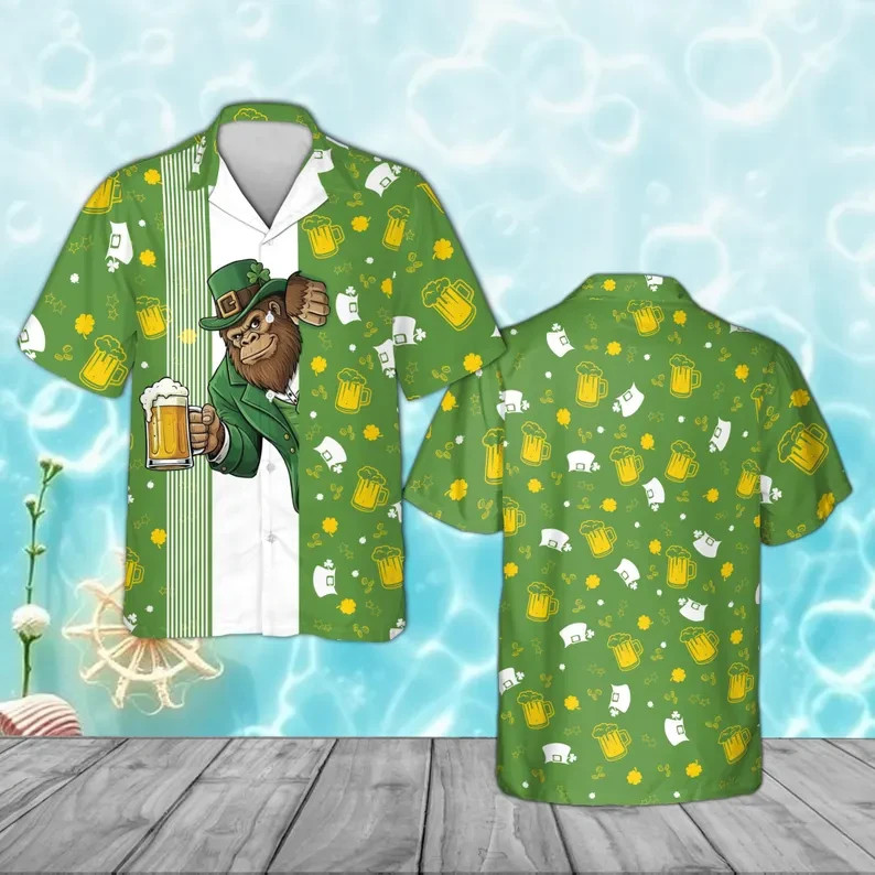 Funny Bigfoot St Patricks Day Hawaiian Aloha Shirt Sasquatch Gift