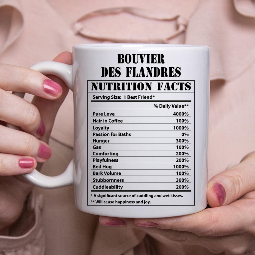 Funny Bouvier Des Flandres Gifts Nutritional Facts White Coffee Mug Product Details.. This high quality 11oz. ceramic white mug has a premium hard coat that provides crisp and vibrant color reproduction sure to last for years. Perfect for all hot & cold beverages. The highest quality printing possible is used. It will never fade no matter how many times you wash it. Material: 100% Ceramic. Print both sides. Dishwasher and Microwave Safe. High Gloss + Premium White Finish. Printed in the U.S.A. Personalized & Custom. We support personalized and custom mug to add custom, when placing an order, you can add notes to the "order note" in shipping address section. Also you can contact us directly via message. Shipping Info. Ready to ship in 1 to 2 business days, All products are made-to-order and proudly printed in the United States. Shipped by USPS and DHL, You will receive your order in 5-7 days. Replace & Refund. All products are defective during shipping broken, chipped will be replaced free of charge. You are not satisfied with the product, we will refund 100% money to you. If any other issues arise, please do not hesitate to message, we would be more than happy to assist you.