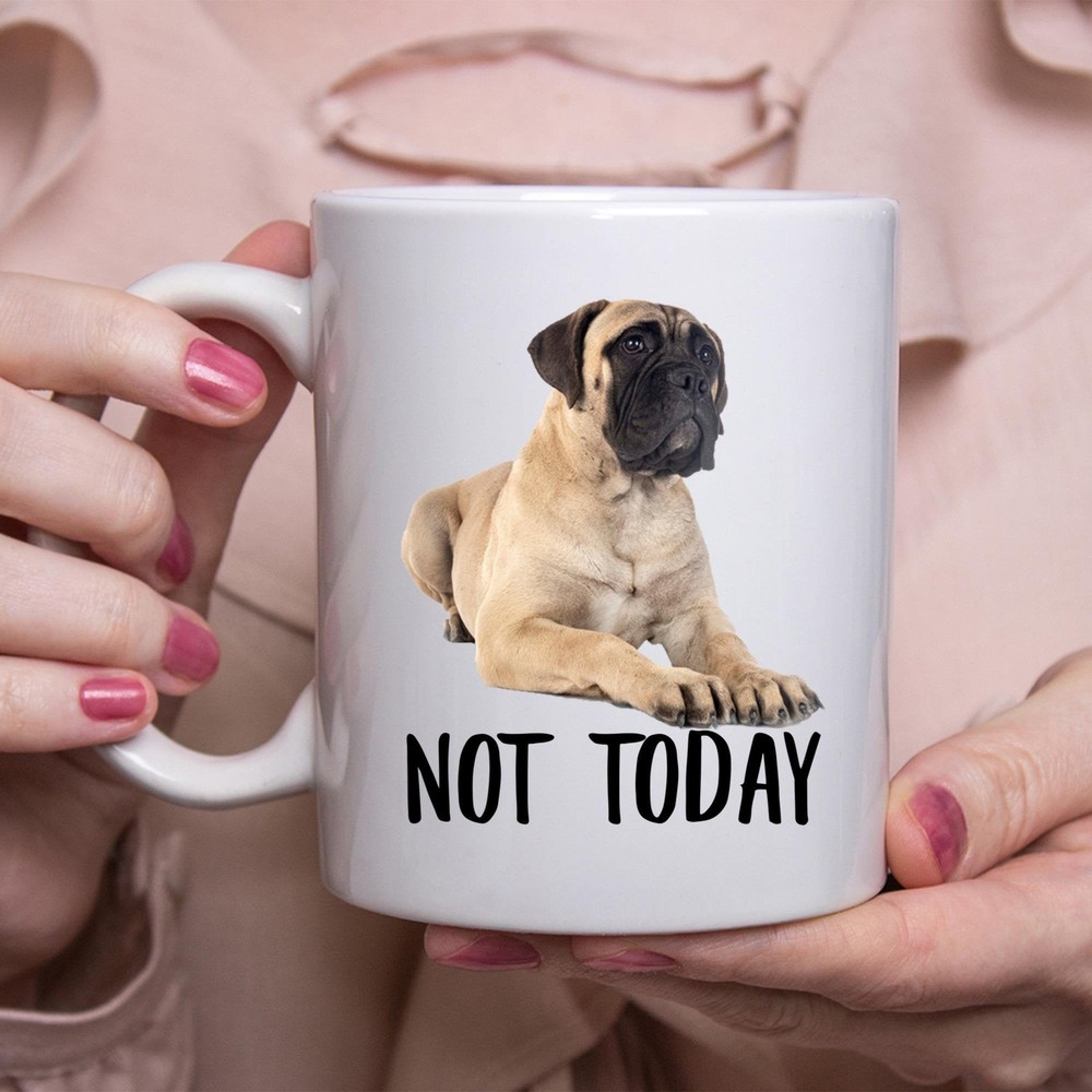 Funny Bullmastiff Gold Not Today Dog Mug Lazy Gift For Women Dogs Mom Coffee Mug Product Details.. This high quality 11oz. ceramic white mug has a premium hard coat that provides crisp and vibrant color reproduction sure to last for years. Perfect for all hot & cold beverages. The highest quality printing possible is used. It will never fade no matter how many times you wash it. Material: 100% Ceramic. Print both sides. Dishwasher and Microwave Safe. High Gloss + Premium White Finish. Printed in the U.S.A. Personalized & Custom. We support personalized and custom mug to add custom, when placing an order, you can add notes to the "order note" in shipping address section. Also you can contact us directly via message. Shipping Info. Ready to ship in 1 to 2 business days, All products are made-to-order and proudly printed in the United States. Shipped by USPS and DHL, You will receive your order in 5-7 days. Replace & Refund. All products are defective during shipping broken, chipped will be replaced free of charge. You are not satisfied with the product, we will refund 100% money to you. If any other issues arise, please do not hesitate to message, we would be more than happy to assist you.