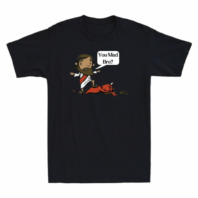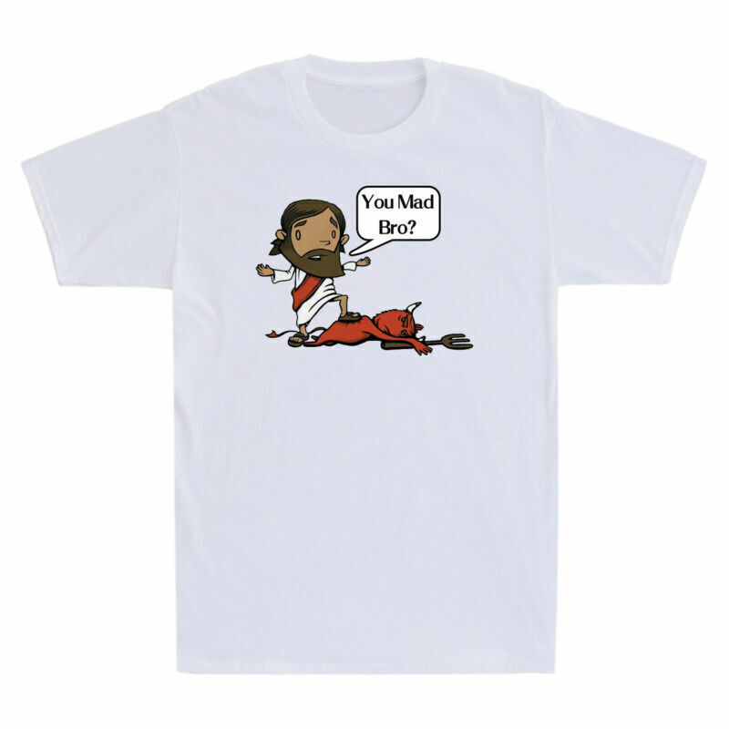 Funny Christian Retro Jesus Devil Graphic Cotton T-Shirt for Men
