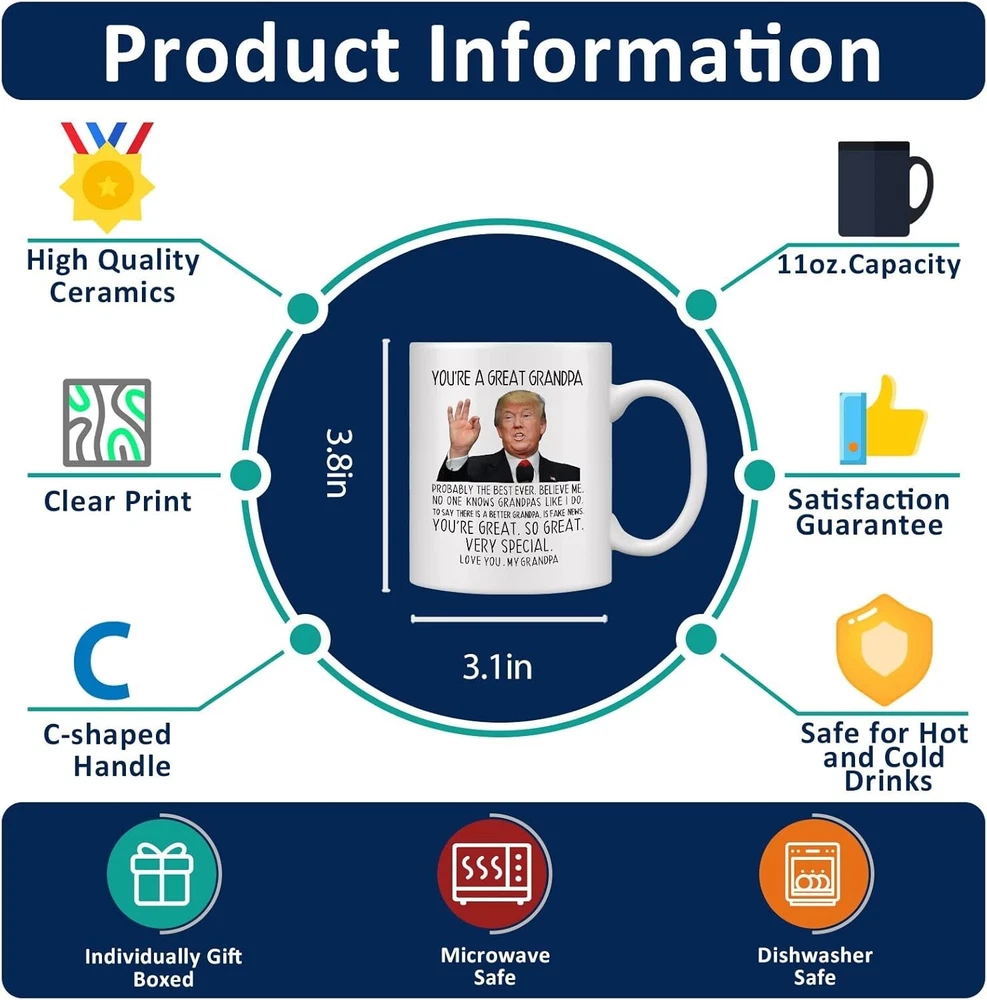 Features: Dishwasher Safe, Microwave Safe Item Weight: 1 lb Occasion: Birthday, Adult, Birthday, Child, Christmas, Mother's Day Character Family: Loving Family Theme: Christmas, Family & Friends, Holiday, Donaltrump Type: Coffee Mug Style: Classic Material: Ceramic Character: Happy, funny Set Includes: Coffee Cup, Coffee Mug, Mug, Tea Cup Country/Region of Manufacture: United States Brand: Unbranded Color: White