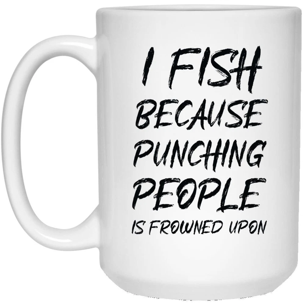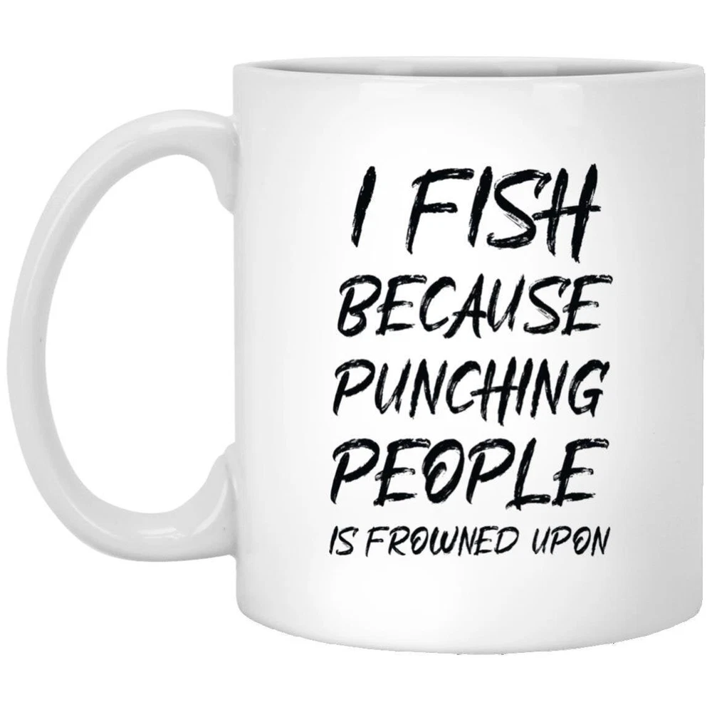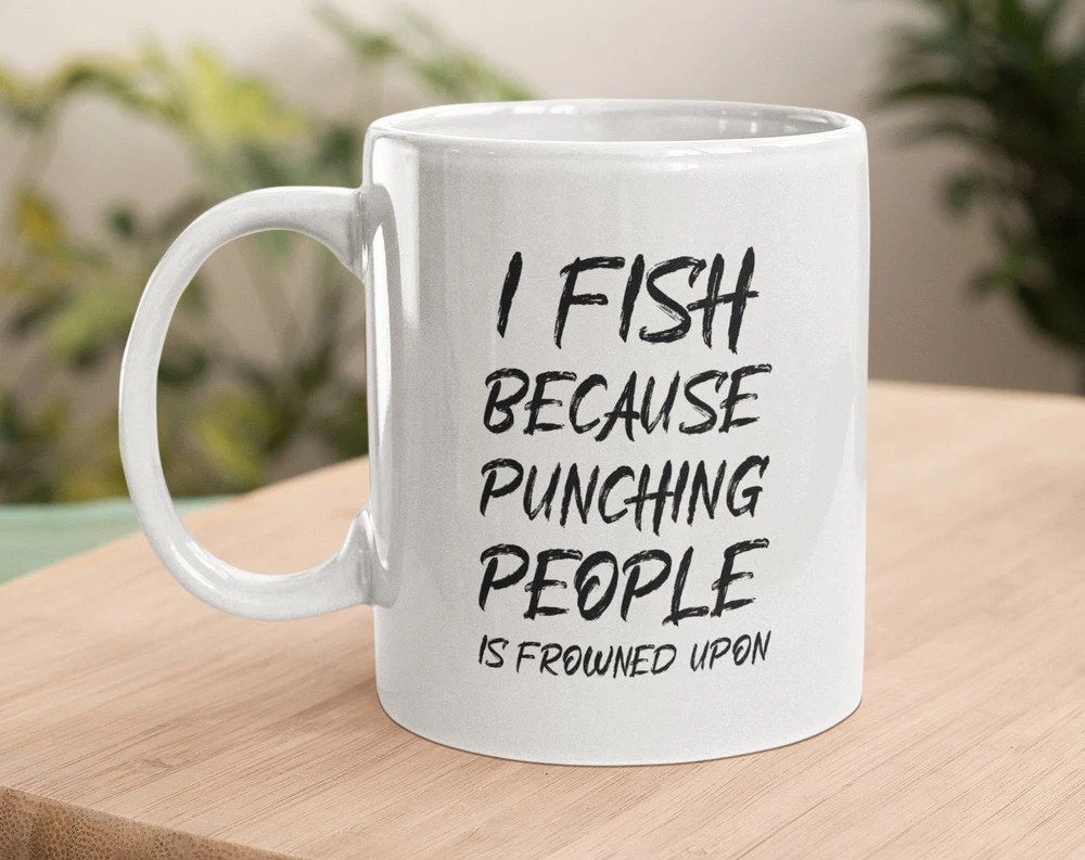 Funny Coffee Mug I Fish Because Punching People Is Frowned Upon Ceramic Mug Product Details.. This high quality 11oz. ceramic white mug has a premium hard coat that provides crisp and vibrant color reproduction sure to last for years. Perfect for all hot & cold beverages. The highest quality printing possible is used. It will never fade no matter how many times you wash it. Material: 100% Ceramic. Print both sides. Dishwasher and Microwave Safe. High Gloss + Premium White Finish. Printed in the U.S.A. Personalized & Custom. We support personalized and custom mug to add custom, when placing an order, you can add notes to the "order note" in shipping address section. Also you can contact us directly via message. Shipping Info. Ready to ship in 1 to 2 business days, All products are made-to-order and proudly printed in the United States. Shipped by USPS and DHL, You will receive your order in 5-7 days. Replace & Refund. All products are defective during shipping broken, chipped will be replaced free of charge. You are not satisfied with the product, we will refund 100% money to you. If any other issues arise, please do not hesitate to message, we would be more than happy to assist you.