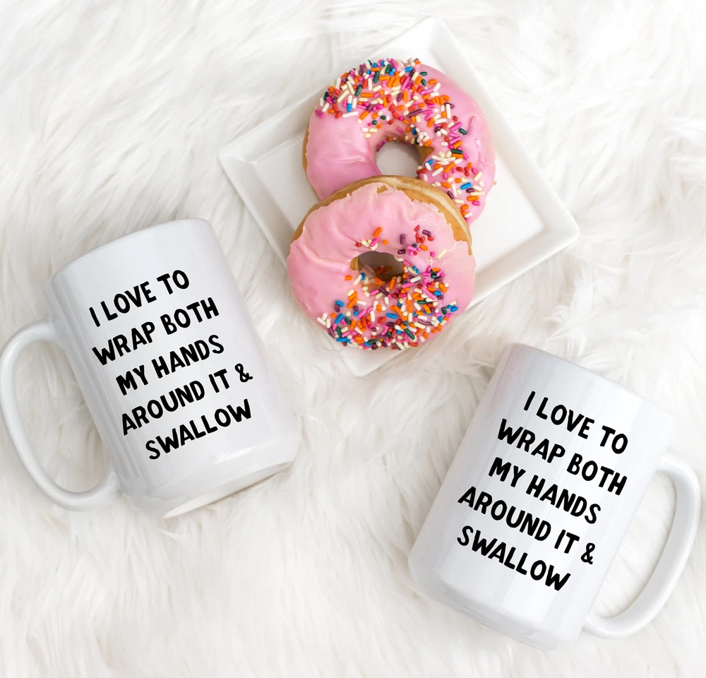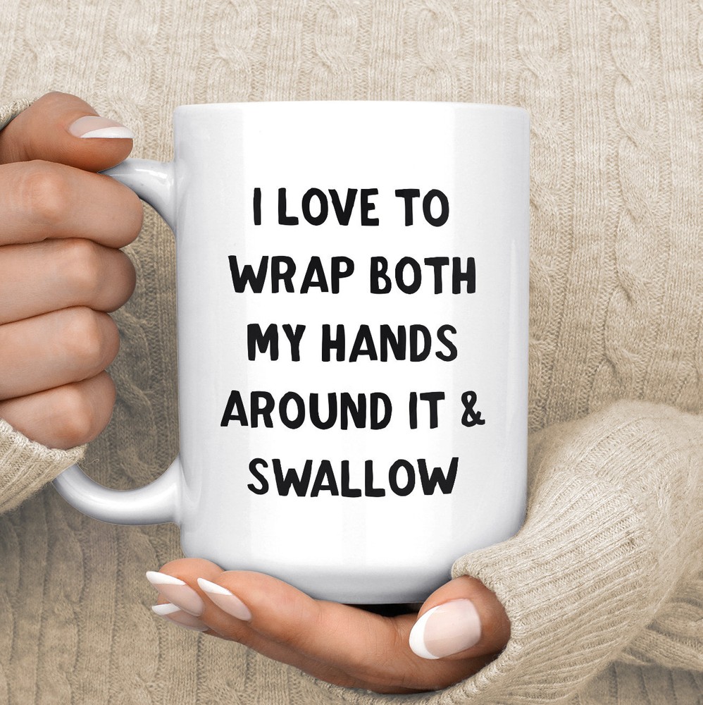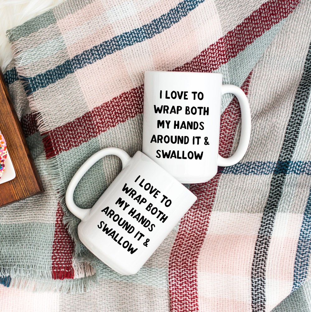 Coffee Mug I Love To Wrap Both My Hands Around It And Swallow Funny Mug Best Product Details.. This high quality 11oz. ceramic white mug has a premium hard coat that provides crisp and vibrant color reproduction sure to last for years. Perfect for all hot & cold beverages. The highest quality printing possible is used. It will never fade no matter how many times you wash it. Material: 100% Ceramic. Print both sides. Dishwasher and Microwave Safe. High Gloss + Premium White Finish. Printed in the U.S.A. Personalized & Custom. We support personalized and custom mug to add custom, when placing an order, you can add notes to the "order note" in shipping address section. Also you can contact us directly via message. Shipping Info. Ready to ship in 1 to 2 business days, All products are made-to-order and proudly printed in the United States. Shipped by USPS and DHL, You will receive your order in 5-7 days. Replace & Refund. All products are defective during shipping broken, chipped will be replaced free of charge. You are not satisfied with the product, we will refund 100% money to you. If any other issues arise, please do not hesitate to message, we would be more than happy to assist you.