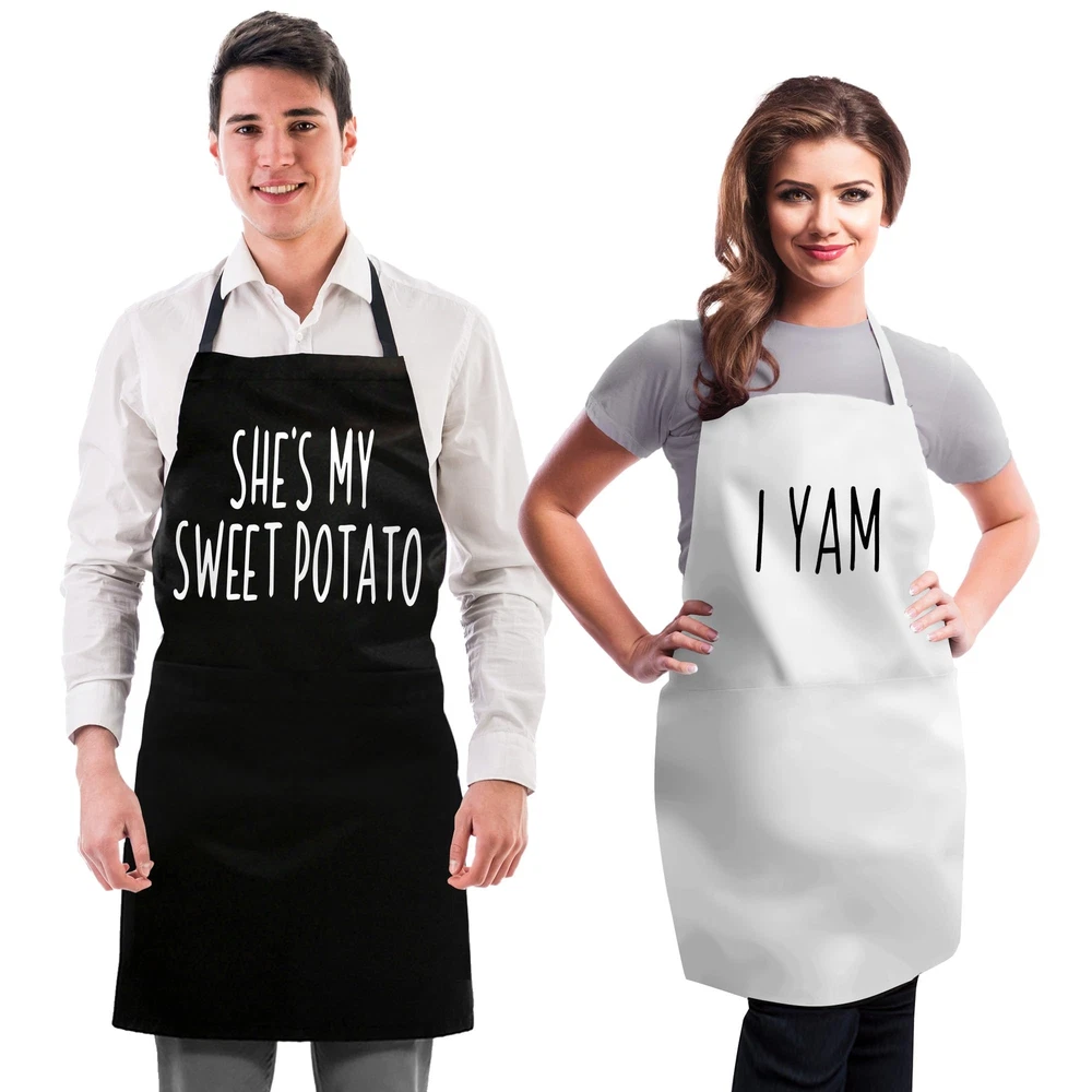 Witty Enterprise Funny Couple Aprons - Gift Ideas For Her Him - Wedding, Engagement, Bridal, Birthday; Kitchen Cooking Set The Funniest Gift; Ideal for any celebration such as Birthday, Engagement, Anniversary, or Housewarming Parties! Surprise Your Girl & Loved Ones; Spoil your sweetheart on Birthday, Bridal Shower, Wedding, or Valentines Day! When it comes to couples gift ideas, gifts for couples who have everything or aprons for women, our funny aprons stand alone! Premium Quality Materials; Super soft high quality Polyester Cotton material. A must have while cooking to protect yourself from the kitchen or grill battlefield. One Size Fit All; TWO Large Pockets to hold your phone or recipe book close at hand, or to keep your culinary tools handy. Both aprons include a long waist tie and an adjustable neck tie to fit all body types. Kitchen Accessories; Feature hilarious slogans are sure to make any couples love the aprons. They make the perfect gift for those with a sense of humor and enjoy a good laugh together. We Care; 100% behind the quality of our products and want you to have the best experience possible on your special day. Description Best gift for unique gifts for couples, gifts for a couple, anniversary gift for couple, anniversary gifts for couple, gifts for couples who have everything, unique couples gift ideas, gifts for couples unique, matching aprons for couples. Bridal shower gifts for the bride, wedding gifts for couples, engagement gifts for her, couples christmas gifts, wedding shower gifts, and anniversary. Apron for happy couples and perfect couples gifts unique apron design, best wishes to happiness the best gift for happy couples for different occasions. SHIPPING Domestic Buyers - We ship within 3 business days of payment, usually sooner - We offer FREE shipping on all orders! - We only ship to the lower 48 states, no APO/FPO addresses or PO Boxes allowed - We have confidence in our products, but if you are not fully satisfied please contact us within 30 days of purchase and you will get full refund. International buyers – please note: Import duties, taxes, and charges aren't included in the item price or postage cost. These charges are the buyer's responsibility. - Please check with your country's customs office to determine what these additional costs will be prior to bidding or buying. Return Policy - This product comes with 30-Days Money Back Guarantee. - If you receive an item and it doesn't work properly or you don't like it because of any reason at all, - we have a 100% refund/return policy. We will ship you a new item or refund your money for the full sale amount. - For all returned products, buyers MUST contact us for the returning address. * Order Cancellation Policy ** You can return a product for up to 30 days from the date you purchased it. 1. The seller reserves the right to cancel the special case only due to eBay cancellation fee. 2. The decision of seller is the final. 3. The seller will respond to the cancellation request within 2 business days. Please wait for the result of cancellation. 4. In case the cancellation is not completed by some reasons, the buyer can follow the options below to get the refund. 4.1 The buyer can reject the item when it arrives. 4.2 The buyer can send the item back to the seller within 30 days If the buyer receives item (USA Shipment ONLY). The seller will provide the FREE return label to the buyer when the buyer opens " Return Item" case on eBay by using the reason as "Change my mind" ONLY. 5. When buyer has placed the order. The order will be processed and completed by automatic warehouse system within 5 minutes. In case that buyer sends the cancellation request after 5 minutes of placing the order, the request will be rejected. **Sending direct message to cancel the order is not allowed for every case.* Return Policy For the return case - If buyer would like to return the items for refund or replacement, please CONTACT SELLER to receive the free return label from seller. The refund or replacement will be processed with the tracking number of return label which is provided by seller only. The other ways of return which are not approved by seller will not be processed for the refund or replacement.