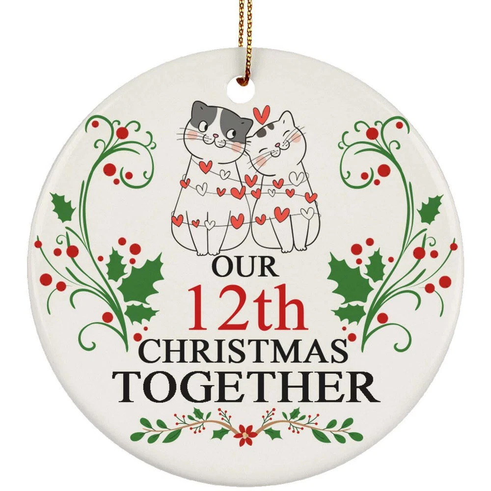 Funny Couple Cat Ornament Christmas Gift Decor 12th Wedding 12 Years Anniversary
