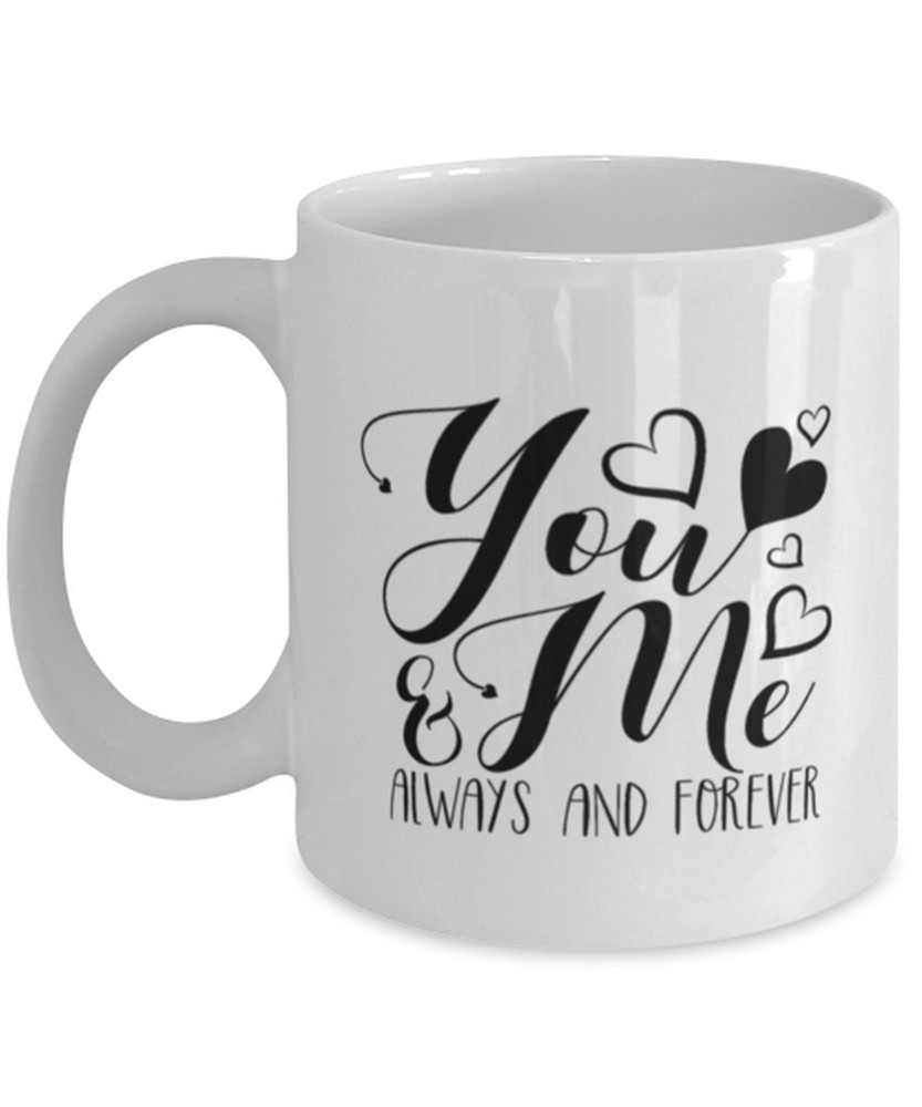 Couples Valentine Funny Coffee Mug Always & Forever Valentines Day Mug Love Mug Product Details.. This high quality 11oz. ceramic white mug has a premium hard coat that provides crisp and vibrant color reproduction sure to last for years. Perfect for all hot & cold beverages. The highest quality printing possible is used. It will never fade no matter how many times you wash it. Material: 100% Ceramic. Print both sides. Dishwasher and Microwave Safe. High Gloss + Premium White Finish. Printed in the U.S.A. Personalized & Custom. We support personalized and custom mug to add custom, when placing an order, you can add notes to the "order note" in shipping address section. Also you can contact us directly via message. Shipping Info. Ready to ship in 1 to 2 business days, All products are made-to-order and proudly printed in the United States. Shipped by USPS and DHL, You will receive your order in 5-7 days. Replace & Refund. All products are defective during shipping broken, chipped will be replaced free of charge. You are not satisfied with the product, we will refund 100% money to you. If any other issues arise, please do not hesitate to message, we would be more than happy to assist you.