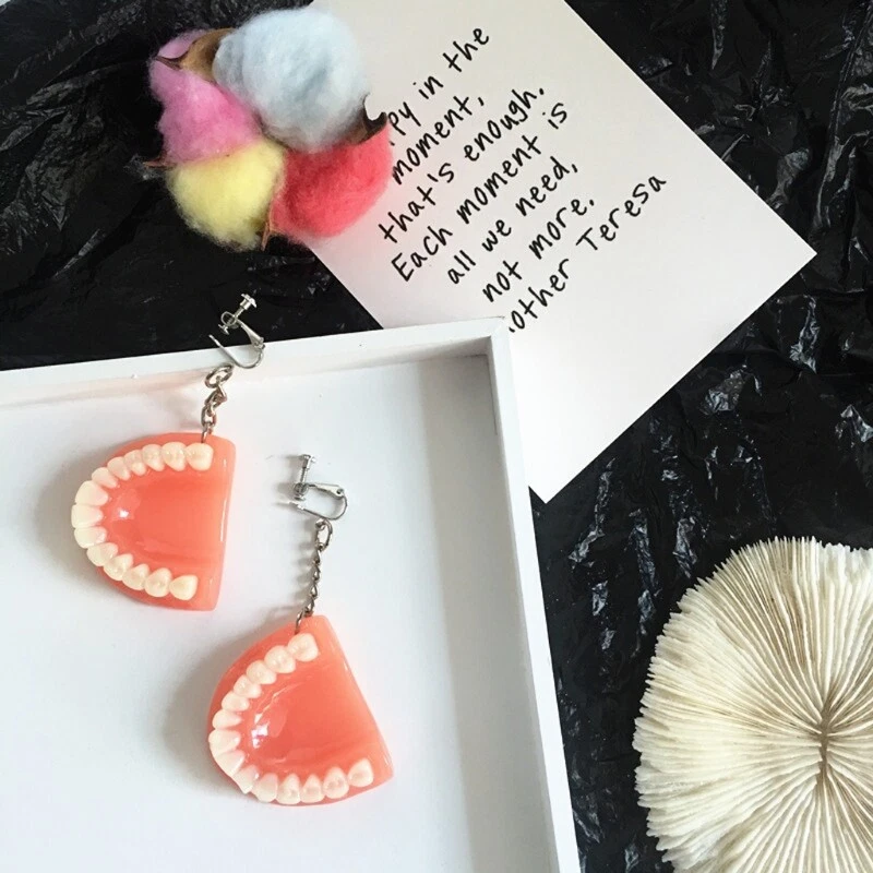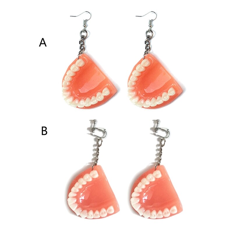 Funny Dental Teeth Earrings Funny 3D Tooth Model Hook Earrings Hygienist Dentist False Teeth Drop Earrings Jewerly Gift Feature: Dental Teeth Dangle Earrings is made of resin, it is easy to maintain and for ideal for long-lasting jewelry designs. This pink 3D tooth model earring gift is very suitable for who go to school in medical-school. It is fun but not rude Our dentist earrings are perfect for mothers, daughters, and anyone else who enjoys fun, wearable products! These unique earrings are different from other common gifts. They add fun to any situation! Give the gift of fun. Item Type :Earrings Designs:Dental Teeth Gender:Unisex Material: Resin & Alloy Color:Silver,Black Type: Optional A Piercing Hook Earrings B Non Piercing Clip-on Earrings Size: More detailed,please see photo. Quantity Pair. Note: Size for manual measurement, there may be a 0 to 3mm error, belongs to the normal phenomenon. And due to the difference between different monitors, the picture may not reflect the actual color of the item. Thank you! Package includes: Pair x False Teeth Earrings.