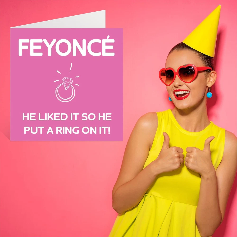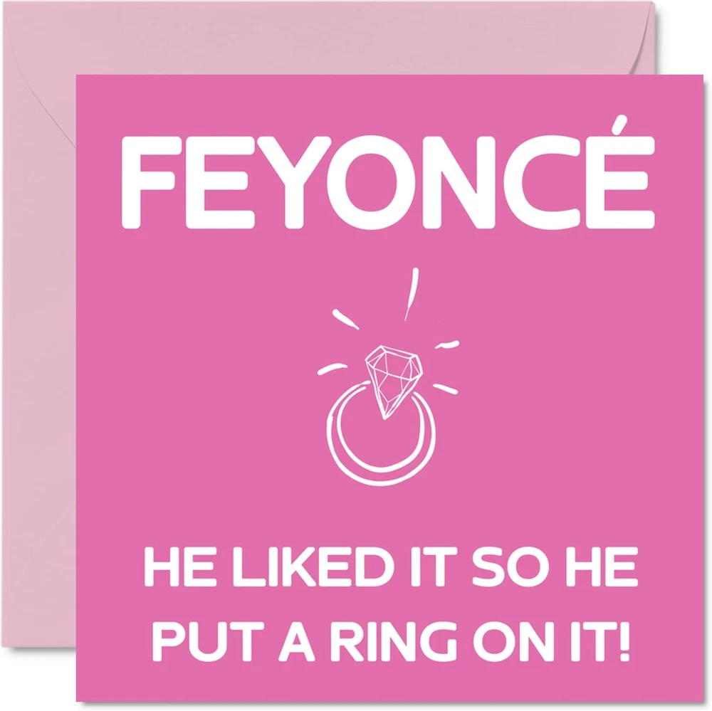 Store New Arrivals Add to Favorite View Feedback Contact Funny Engagement Cards for Couples - Feyonce Put a Ring on It - Congratulations Happy Engagement Gifts, Joke Congrats Card, 5.7 X 5.7 Inch Wedding Marriage Greeting Cards for Fiance Fiancee Description Item model number GCARD-145-EGPTRG-PNK-FBA Number of Items 1 Color Multicolor Manufacturer Part Number GCARD-145-EGPTRG-PNK-FBA Item Weight 0.739 ounces Pre-printed engagement Product Dimensions 11.69 x 5.71 x 0.01 inches Size 145mm x 145mm MAKE THEM LAUGH WITH THIS HILARIOUS CONGRATULATIONS ENGAGEMENT CARD: This exceptional quality card for her or him shows the design "Feyonce - He Liked It So He Put A Ring On It". If you are looking for awesome congratulations greetings cards for women and men, then then this congrats card is bound to make them giggle. Not just a couples gifts for him or her this could also be for a engagement gifts for couples, Son, Daughter, Grandson, Granddaughter, Friend, Work Colleague WHAT DO YOU GET: The card is printed on one side and BLANK ON THE INSIDE to allow you to write your very own message. The unique fun design is printed on a specially sourced and environmentally responsible board. At 360 microns thick and 300gsm the natural white one-sided gloss board has a quality look and feel. Supplied with a coloured gummed envelope to complement the design and ready to be sealed and sent in the post. NO SMUDGES: There is nothing worse than writing inside a card to find that the shiny surface makes the smudge. This is why we use a high quality one sided coated board. The uncoated side will absorb more of the from your pen to make smudging a thing of the past. Well done cards, just to say cards, Son engagement card, engagement rate. SIZES: Greeting Card = 5.7 Inch x 5.7 Inch, Envelope = 6.1 Inch x 6.1 Inch, Card Weight 300gsm, Card Thickness = 360 micron. Great engagement gifts for couples funny. Congratulations cards, congratulation card, engagment gifts, sister engagement card, engagement card funny, engagement cards for son and fiancee, engagement greeting cards. MADE AND QUALITY CHECKED IN THE UK: We print and manufacture all our product right her in the UK so you can be sure of a fast turnaround and a product that is expertly made. Using the very best Forest Stewardship Council certified board our card is conscious of the responsible management of the world's forests - funny wedding card, engagement card daughter and fiance. Product Description Happily Ever Afters Introducing our enchanting range of engagement and wedding cards, crafted to celebrate love and happily ever afters. We recognize the significance of finding the perfect card that captures the essence of this momentous occasion. Our engagement and wedding card collection presents a delightful assortment of heartfelt, elegant, and beautifully crafted designs that evoke joy and reflect the profound significance of the commitment being made. Whether it's a joyous engagement announcement or a blissful wedding celebration, our cards add a touch of romance and convey heartfelt congratulations to the happy couple. Delivering 4 Every Occasion Since 2014 Based in Bury St Edmunds, Suffolk, our journey began in 2014 as a small printing specializing in personalized printing on mugs, garments and for phones. Designing and printing have always been at the core of our passion so within a few years, we expanded our product range to include printed greeting cards. From birthdays and anniversaries to weddings and engagements, our beautifully crafted cards will help you express your emotions with elegance and flair. Join us on this creative journey as we continue to explore new avenues in design and printing excellence, always striving to exceed your expectations. Celebrate Every Occasion Celebrate special moments with our versatile greeting cards selection! Birthdays, anniversaries, engagements, weddings, housewarming, new job, new baby, retirement and more - our unique designs have you covered. Spread joy, love and laughter with our wide range of occasion-specific cards. Perfect for every celebration! Hand Picked and Packed Every greeting card is handpicked and packed with utmost care. Our dedicated team takes great pride in curating a selection of high-quality cards. With our handpicked and packed greeting cards, you can create meaningful connections and make someone's day truly unforgettable. Crafted In The UK Meticulously designed and printed in the UK by a small business driven by care and pride. We pour our heart into every design, ensuring that our high-quality products bring joy and touch hearts. Celebrate special moments knowing that each card is made with love and a commitment to excellence. Policy on Product Sourcing and Fulfillment Dear Valued Customers, We would like to clarify an important aspect of our business operations to ensure transparency and trust in our relationship with you. Product Fulfillment: Fulfillment by Amazon (FBA): The products are stored in Amazon Fulfillment Centers. This storage solution ensures that the inventory is kept in a secure and climate-controlled environment, which helps maintain the quality and safety of the products. Efficient Delivery: Utilizing Amazon's fulfillment services allows us to leverage their robust logistics network to provide you with fast and reliable shipping. This means you receive your purchases in a timely manner with the added assurance of Amazon's trusted delivery systems. Customer Assurance: Quality Control: Every product is carefully selected and undergoes rigorous quality checks before being listed for sale. Our commitment is to provide you with high-quality items that meet your expectations. Secure Storage: Amazon's Fulfillment Centers are renowned for their high standards of security and efficiency. Your products are stored safely until they are shipped to you. Customer Support: Should you have any questions or concerns regarding your purchase, our customer support team is readily available 