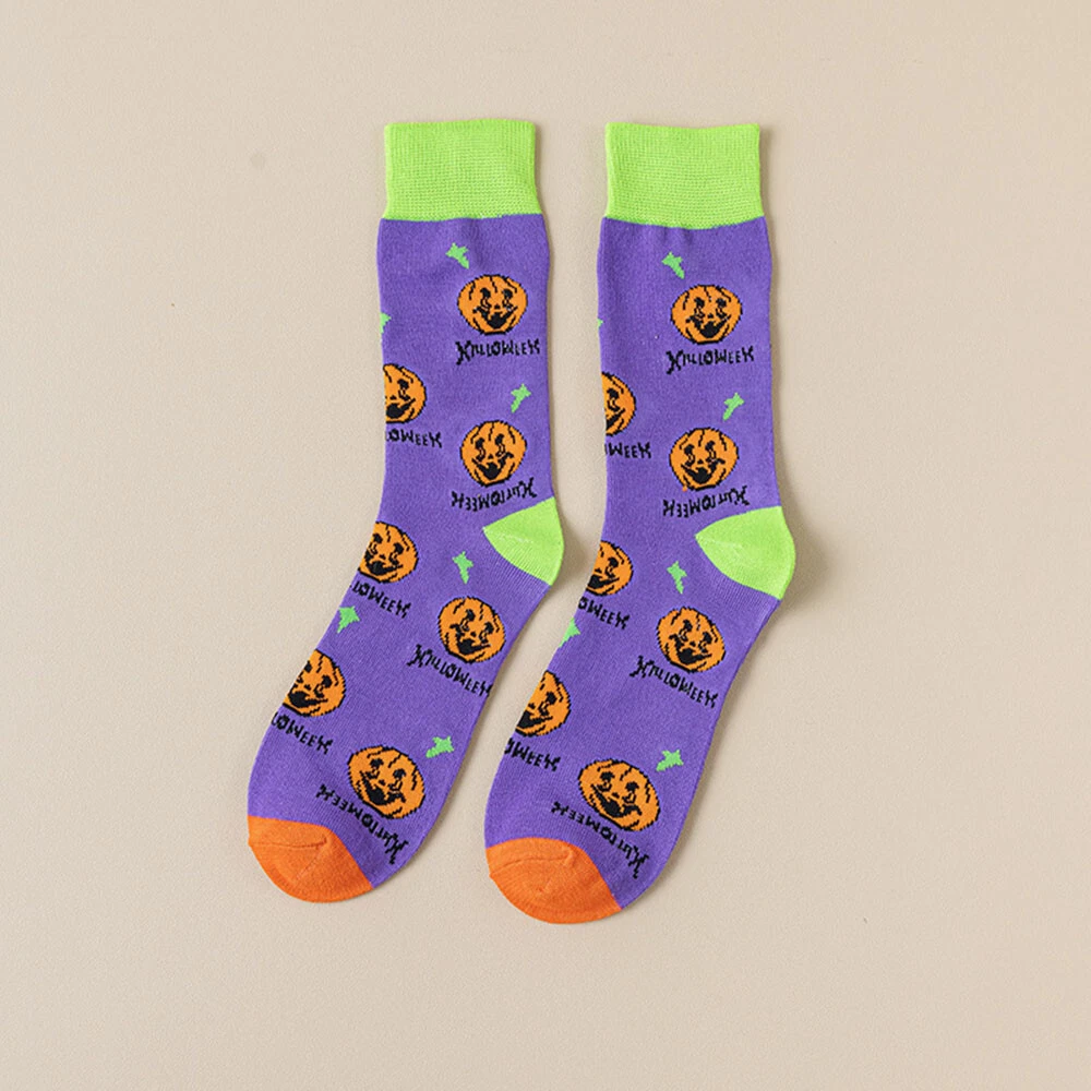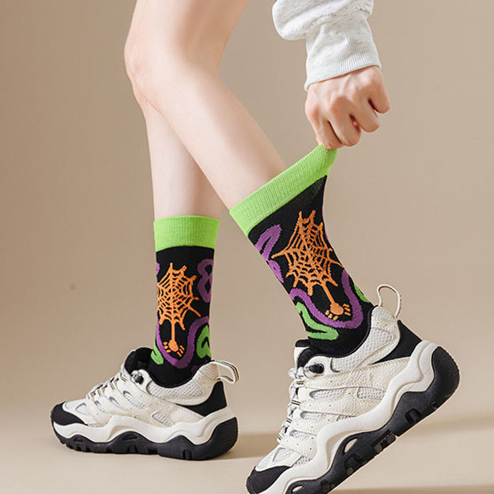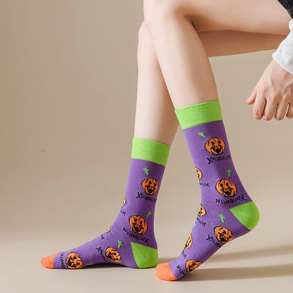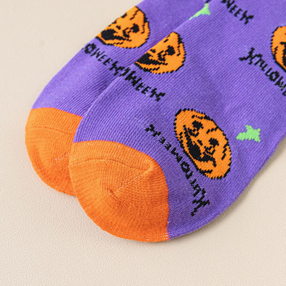 Package:1 pairs of socks(Other Accessories are not included) Material:cotton Colors:pumpkin,little monsters,spider web,bat,human skeleton Size:foot length 18cm/7.08",tube length 18cm/7.08" Pattern:Halloween printed Thickness:standard Season:Spring,Autumn,Winter Garment:Hand washing or machine washing,line dry. Attentions: 1.The Real Object May Exist Slightly Colors Differences Compared To Images As Different Computers Display.Caution If Minding,Thanks. 2.There Might Be A Manual Measuring 1-3 cm Error.Sorry For Any Inconvenience. 3.Please Prevail On Real Item, Model Images For Reference Only. 4.Attention!!!Please check the size chart carefully before placing the order.