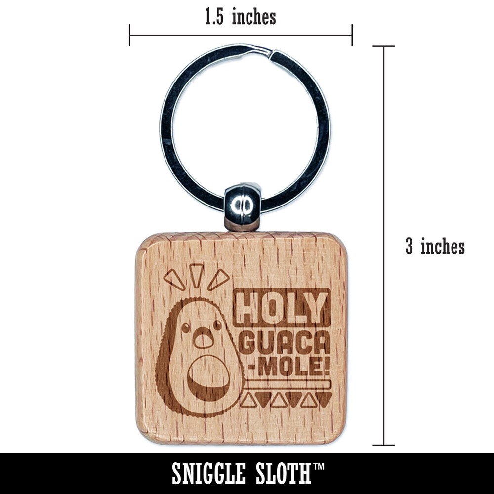Funny Holy Guacamole Avocado Engraved Wooden Keychain Charm
