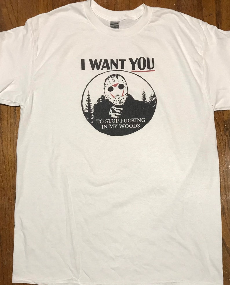 Size Type: Regular Department: Unisex Adults Country/Region of Manufacture: United States Type: T-Shirt Fit: Regular Theme: Band, Christmas, Halloween, Horror, Movie, Music, Punk, Rock Pattern: Graphic Print Material: Cotton Character: Jason Wants, Jason Wants You, Jason Sleeve Length: Short Sleeve Neckline: Crew Neck Brand: Gildan