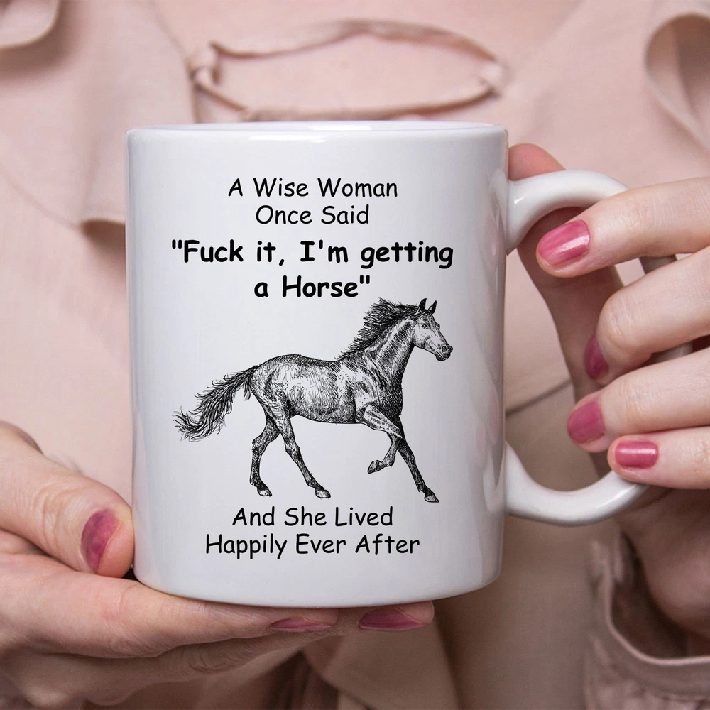 Funny Horse Gifts For Women A Wise Woman Once Said Coffee Mug White Product Details.. This high quality 11oz. ceramic white mug has a premium hard coat that provides crisp and vibrant color reproduction sure to last for years. Perfect for all hot & cold beverages. The highest quality printing possible is used. It will never fade no matter how many times you wash it. Material: 100% Ceramic. Print both sides. Dishwasher and Microwave Safe. High Gloss + Premium White Finish. Printed in the U.S.A. Personalized & Custom. We support personalized and custom mug to add custom, when placing an order, you can add notes to the "order note" in shipping address section. Also you can contact us directly via message. Shipping Info. Ready to ship in 1 to 2 business days, All products are made-to-order and proudly printed in the United States. Shipped by USPS and DHL, You will receive your order in 5-7 days. Replace & Refund. All products are defective during shipping broken, chipped will be replaced free of charge. You are not satisfied with the product, we will refund 100% money to you. If any other issues arise, please do not hesitate to message, we would be more than happy to assist you.