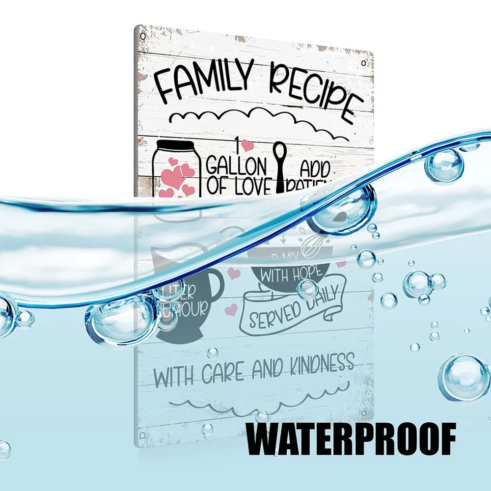 Funny Kitchen Family Recipe Metal Tin Sign Wall Art Decor Kitchen Sign Farmhouse Home Rustic Decor Gifts Product Details Color: white Brand: BEASTZHENG Material: Metal Theme: Family Recommended Uses For Product: Office Mounting Type: Wall Mount Product Dimensions: 12"L x 12"W Shape: Rectangular Style: Durable Pre-printed: Family Recipe UPC: 676055329399 Item Weight: 0.81 ounces Manufacturer: BEASTZHENG MATERIAL: Made of high-quality aluminum material. High quality and durable. SIZE:8 x 12 inches. EASY TO INSTALL: Equipped with 4 pre-drilled holes. Installation is easy and fast. GREAT DECORATION: This tin sign is very suitable for home or office decoration. It can reflect your personal taste very well. At the same time, it can also improve the atmosphere of the home or office. GIFT: This is a perfect gift choice. It can be used by yourself or given to the one you love. It is suitable for various occasions, such as Christmas, Thanksgiving, Valentine's Day, graduation, housewarming, wedding, Father's Day, Mother's Day, birthday, etc. GIFT: This is a perfect gift choice. It can be used by yourself or given to the one you love. It is suitable for various occasions, such as Christmas, Thanksgiving, Valentine's Day, graduation, housewarming, wedding, Father's Day, Mother's Day, birthday, etc.