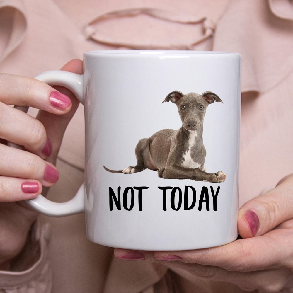 Funny Greyhound Blue Not Today Dog Mug Lazy Gift For Women Dogs Mom Coffee Mug Product Details.. This high quality 11oz. ceramic white mug has a premium hard coat that provides crisp and vibrant color reproduction sure to last for years. Perfect for all hot & cold beverages. The highest quality printing possible is used. It will never fade no matter how many times you wash it. Material: 100% Ceramic. Print both sides. Dishwasher and Microwave Safe. High Gloss + Premium White Finish. Printed in the U.S.A. Personalized & Custom. We support personalized and custom mug to add custom, when placing an order, you can add notes to the "order note" in shipping address section. Also you can contact us directly via message. Shipping Info. Ready to ship in 1 to 2 business days, All products are made-to-order and proudly printed in the United States. Shipped by USPS and DHL, You will receive your order in 5-7 days. Replace & Refund. All products are defective during shipping broken, chipped will be replaced free of charge. You are not satisfied with the product, we will refund 100% money to you. If any other issues arise, please do not hesitate to message, we would be more than happy to assist you.
