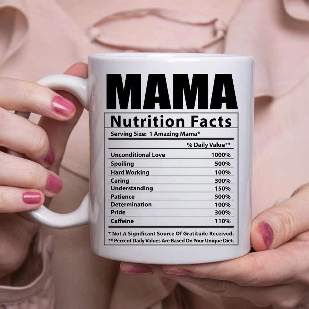 Funny Mama Gifts Nutritional Facts White Coffee Mug Product Details.. This high quality 11oz. ceramic white mug has a premium hard coat that provides crisp and vibrant color reproduction sure to last for years. Perfect for all hot & cold beverages. The highest quality printing possible is used. It will never fade no matter how many times you wash it. Material: 100% Ceramic. Print both sides. Dishwasher and Microwave Safe. High Gloss + Premium White Finish. Printed in the U.S.A. Personalized & Custom. We support personalized and custom mug to add custom, when placing an order, you can add notes to the "order note" in shipping address section. Also you can contact us directly via message. Shipping Info. Ready to ship in 1 to 2 business days, All products are made-to-order and proudly printed in the United States. Shipped by USPS and DHL, You will receive your order in 5-7 days. Replace & Refund. All products are defective during shipping broken, chipped will be replaced free of charge. You are not satisfied with the product, we will refund 100% money to you. If any other issues arise, please do not hesitate to message, we would be more than happy to assist you.