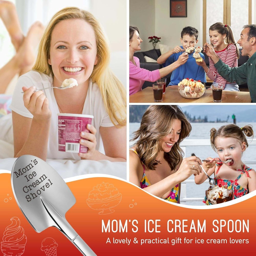 Funny Mothers Day Mama Gifts for Mom Birthday Idea Mother in Law Mommy Presents, from Daughter Son, Small Cute Stuff Things Mom's Ice Cream Shovel Scoop Item Description Mom's Ice Cream Spoon - It's a lovely but practical gift for ice cream lovers; engraved "Mom's Ice Cream Shovel" will make a hit for your mom's birthday, mothers day, christmas stocking stuffers, etc Mother's Day For Moms From Daughter - A practical mom spoon will be the perfect mothers day presents for your best mom, bonus mom, mother in law, mommy, etc; Ideal for mom, bad moms, mommy, grandma's mothers day Gifts For Mom Who Has Everything - this mom's ice cream shovel will be a special womens thoughtful gift for your best mom, ideal gifts for women birthday; It's a good reminder that you love her while she uses this spoon Material - This mom's ice cream spoon is made of 304 stainless steel material won't rust and deform, smooth surface for safe healthy use; The mirror polished sppon will keeps its glossiness for a long time use; It's dishwasher safe Size And Weight - It measures about 6.1 inches, and the weight is about 1.0 oz; Smooth and textured grip is comfortable and safe use Multi-purpose Usage - Suitable for eating ice cream, spread peanut butter, stir coffee, cake, dinner, etc; The multi-purpose spoon with engraved interesting words will bring you a good mood when you use it every time Perfect for Every Occasion - A great gift choice for mom's birthday, Mothers day, valentine's day, thanksgiving, Christmas, wedding, anniversary, retirement, etc; A good way to show your appreciation and love for her › See more product details Hey, are you looking a funny but special gift for your best dad who loves ice cream everyday? This Dad's Ice Cream Shovel spoon engraved the warming message will be a perfect choice for your dad, no matter on Christmas, Birthday, Fathers Day, Valentines Day, Retirement, Thanksgiving, or other any holidays. Believe your dad will feel your love the first time he received this Dad's Ice Cream Shovel spoon. Perfect gift ideas for dad, daddy, father, father in law, etc., on birthday, christmas, thanksgiving, fathers day, retirement, valentines day, etc. It's a lovely but practical gift for ice cream lovers. Every day is a good day, we maybe need a simple but meaningful gift to celebrate every moment we spent with our family, friends, or colleague. Maybe it's an ice cream shovel spoon, a coffee mug, a lovely bracelet, a whiskey glass set, a BBQ tray gift set, or an ornament for decoration, each gift is infused with our love and concentrated attention. The smile when you receive the gift is the greatest affirmation and recognition for us, and thank you for liking our gifts. We will continue to work hard further, hope this small gift passes love with love. More dad gifts for birthday, valentines day, fathers day, Christmas, Thanksgiving, retirement, anniversary, grandparents day, etc. Payment Shipping . Return