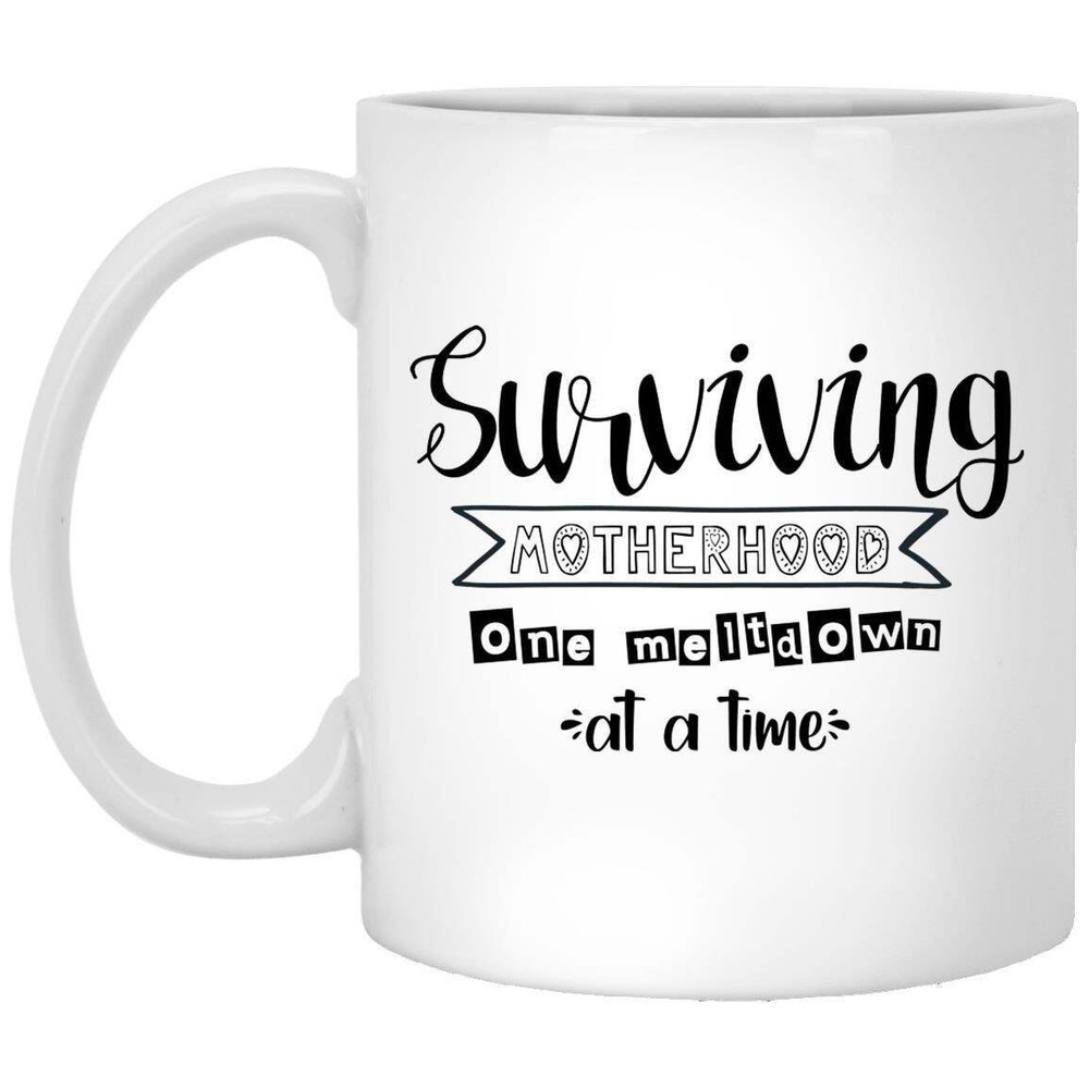 Surviving Motherhood One Meltdown At A Time Coffee Mug Funny Novelty Coffee Cup Product Details.. This high quality 11oz. ceramic white mug has a premium hard coat that provides crisp and vibrant color reproduction sure to last for years. Perfect for all hot & cold beverages. The highest quality printing possible is used. It will never fade no matter how many times you wash it. Material: 100% Ceramic. Print both sides. Dishwasher and Microwave Safe. High Gloss + Premium White Finish. Printed in the U.S.A. Personalized & Custom. We support personalized and custom mug to add custom, when placing an order, you can add notes to the "order note" in shipping address section. Also you can contact us directly via message. Shipping Info. Ready to ship in 1 to 2 business days, All products are made-to-order and proudly printed in the United States. Shipped by USPS and DHL, You will receive your order in 5-7 days. Replace & Refund. All products are defective during shipping broken, chipped will be replaced free of charge. You are not satisfied with the product, we will refund 100% money to you. If any other issues arise, please do not hesitate to message, we would be more than happy to assist you.
