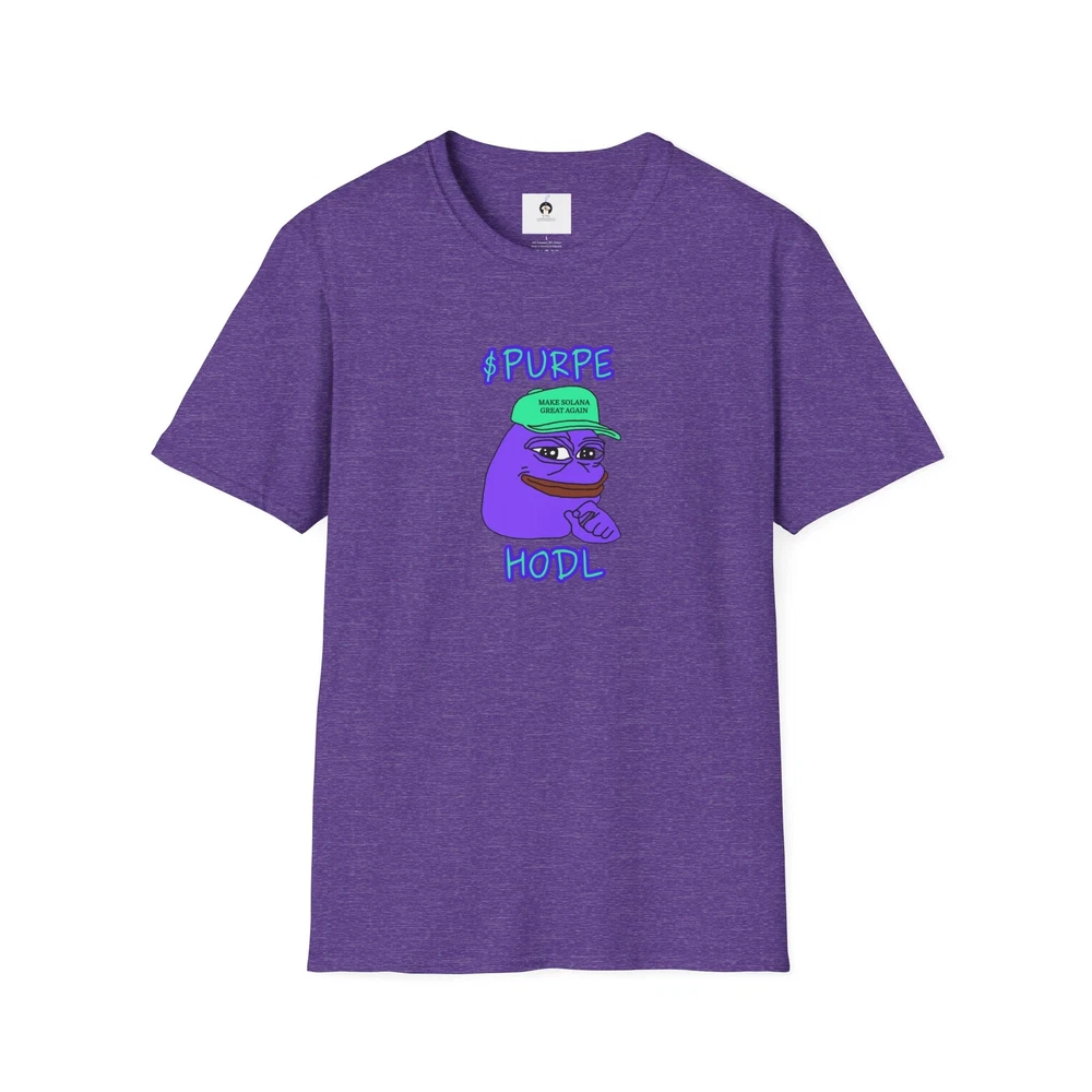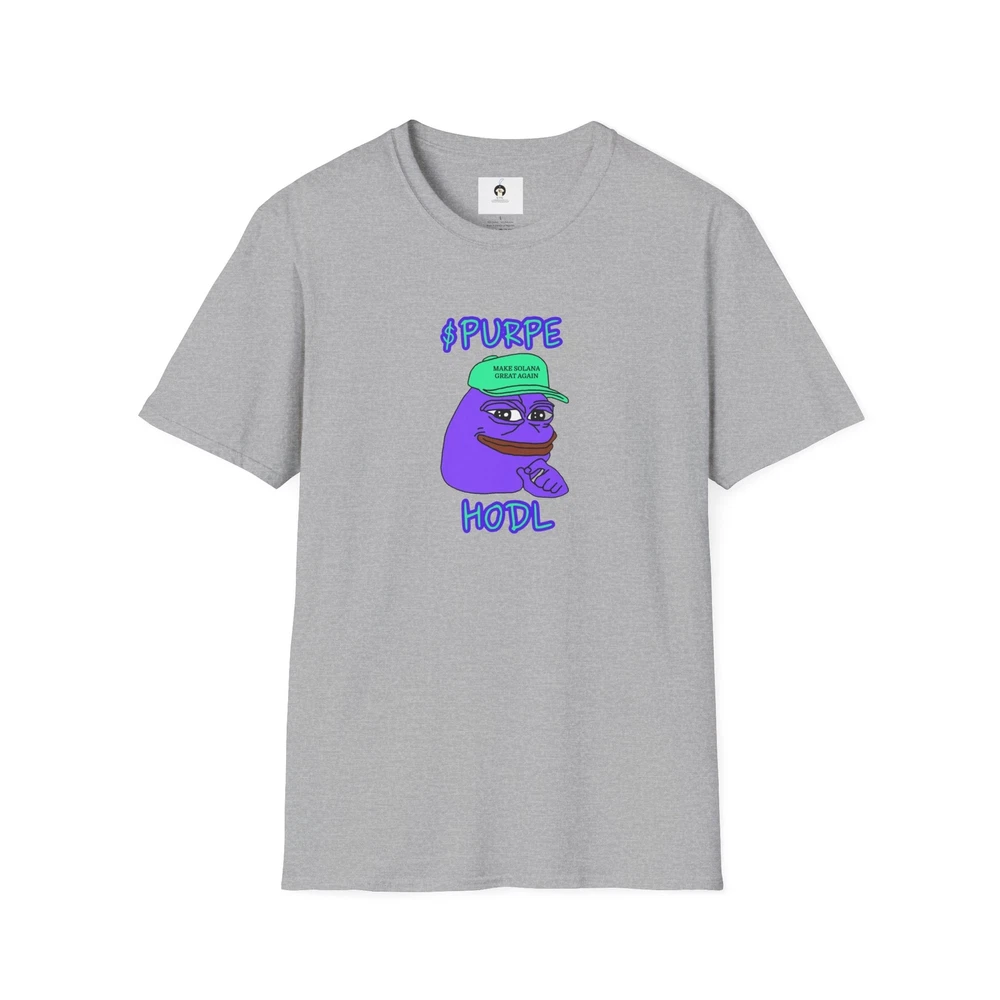 This funny gift tee with a purple meme coin purple Pepe design is perfect for those who love humor and memes. It is a great conversation starter and can be worn casually or as a statement piece. Ideal for meme enthusiasts and those who appreciate a good laugh. Perfect for gifting on birthdays, holidays, or as a fun surprise for a friend. Product features - Made from 100% ring-spun cotton for a lightweight and comfortable feel - Classic fit with crew neckline for a versatile style - Ethically grown and harvested US cotton for sustainability - Variety of fabric blends available for different color options - Tear-away label for added comfort Care instructions - Do not dryclean - Machine wash: warm (max 40C or 105F) - Do not bleach - Tumble dry: low heat - Iron, steam or dry: low heat