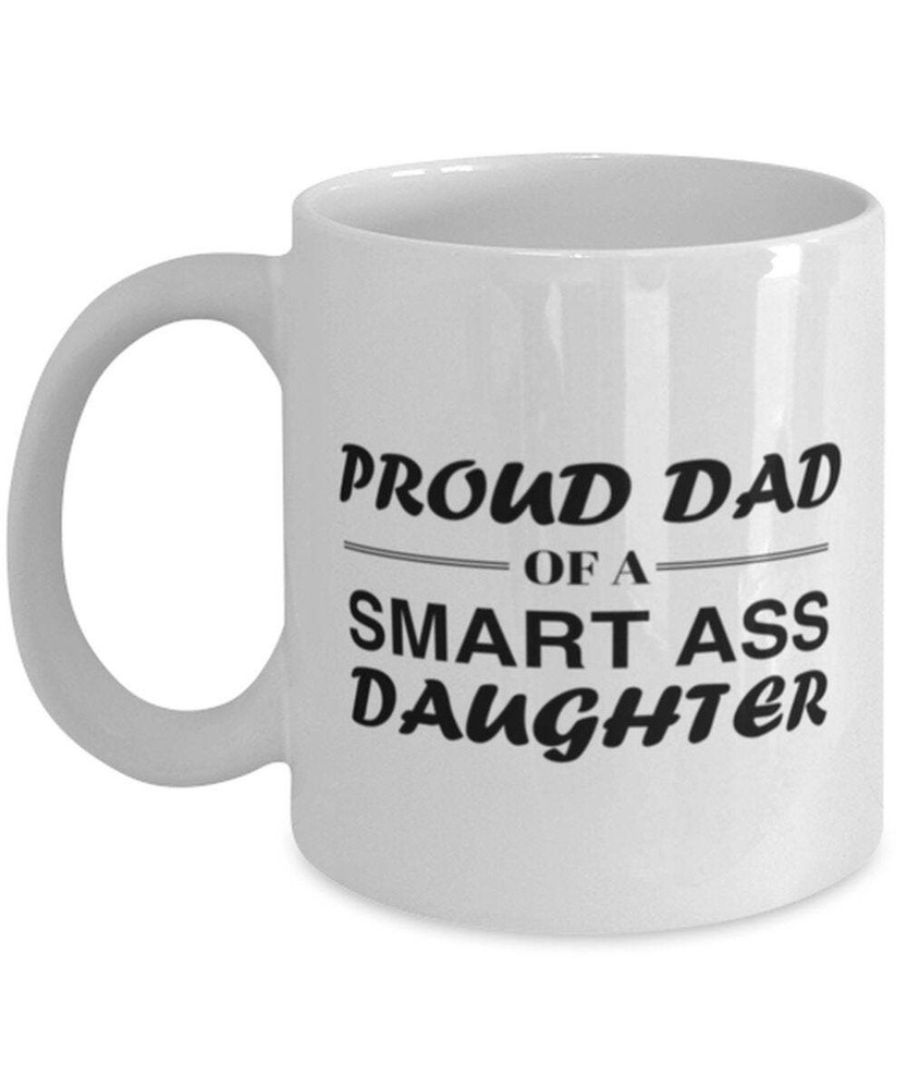 Gift From Daughter Funny Coffee Mug Proud Dad Of Smartass Daughter Mug For Dad Product Details.. This high quality 11oz. ceramic white mug has a premium hard coat that provides crisp and vibrant color reproduction sure to last for years. Perfect for all hot & cold beverages. The highest quality printing possible is used. It will never fade no matter how many times you wash it. Material: 100% Ceramic. Print both sides. Dishwasher and Microwave Safe. High Gloss + Premium White Finish. Printed in the U.S.A. Personalized & Custom. We support personalized and custom mug to add custom, when placing an order, you can add notes to the "order note" in shipping address section. Also you can contact us directly via message. Shipping Info. Ready to ship in 1 to 2 business days, All products are made-to-order and proudly printed in the United States. Shipped by USPS and DHL, You will receive your order in 5-7 days. Replace & Refund. All products are defective during shipping broken, chipped will be replaced free of charge. You are not satisfied with the product, we will refund 100% money to you. If any other issues arise, please do not hesitate to message, we would be more than happy to assist you.
