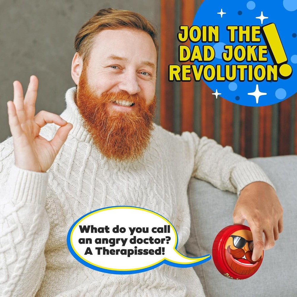 ABOUT THIS ITEM 30 Father's Day Gift: Bring endless laughter with over 100 new cheesy dad jokes that will have everyone groaning and giggling. These family-friendly jokes are perfect for all ages and make fantastic gifts for dads who want nothing or have everything. Record Your Own Jokes: Share your unique humor with the Dad Jokes Button! Double-press the top button to enter recording mode, hold the "REC" button to capture your joke, and enjoy playback. Create a custom dad joke with 60-second recording! Ideal Gift for Any Occasion: Whether it’s Father’s Day, April Fool's Day, Friendsgiving, birthdays, anniversaries, parties, this button makes a fantastic gift idea for dad, son, stepson, grandpa, son-in-law, brother-in-law, men, adults, coworkers Adjustable Volume: Choose the perfect sound level for any setting! Press the "REC" button to toggle between high and low volume, ensuring everyone can enjoy the fun without missing a punchline. Cool gift for first time dads & dads over 70 Ready to Gift: The Dad Jokes Button comes with two long-lasting AAA batteries, so it's ready for instant laughter right out of the box. Perfect gift from wife, mother, stepmother, daughter, sister, or friend, and comes packaged in a co Product Description ol gift box.
