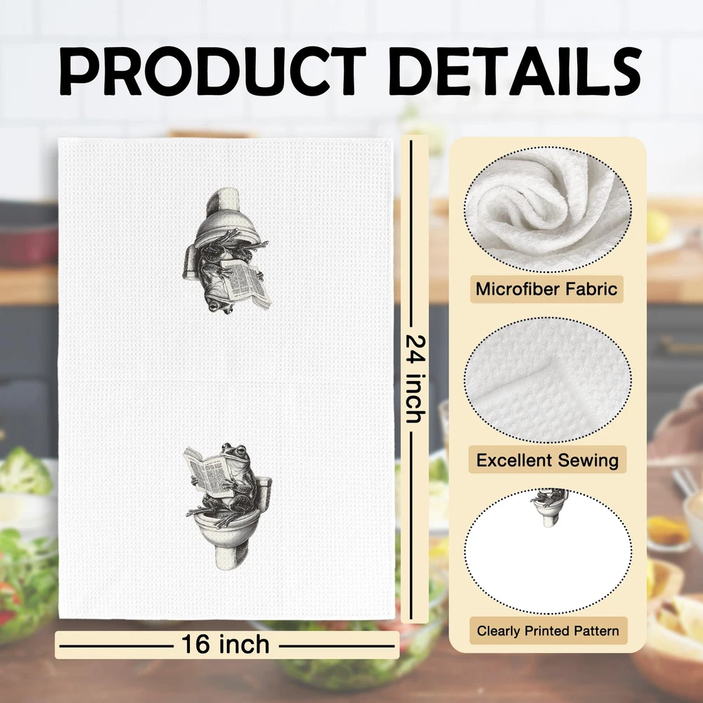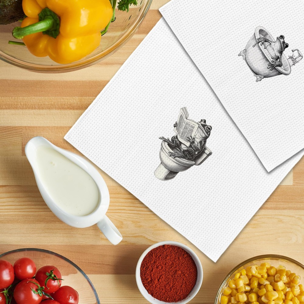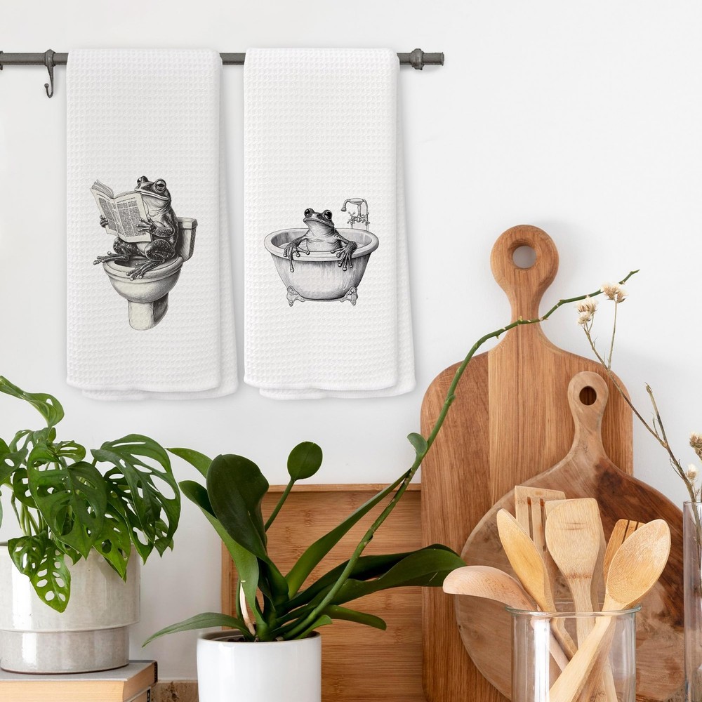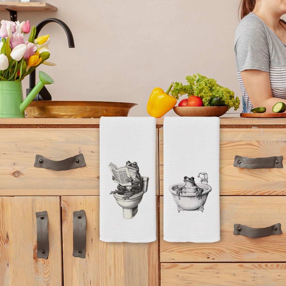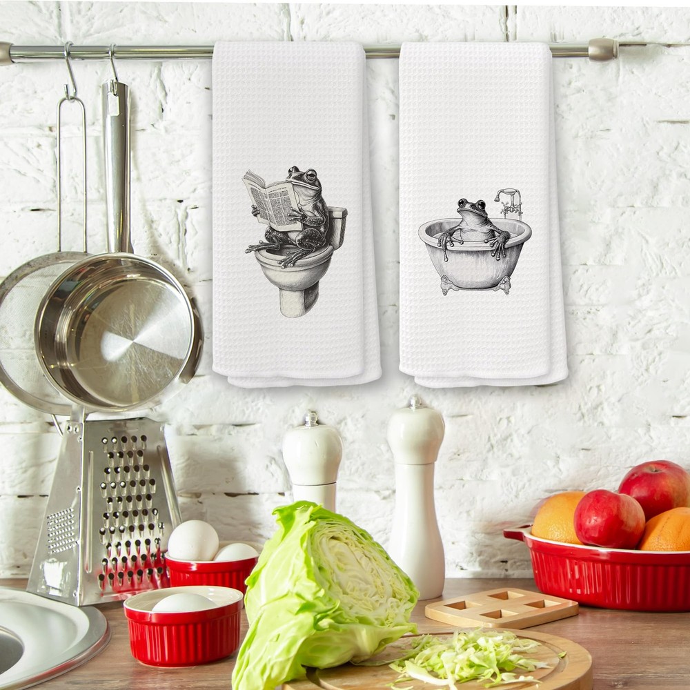 Funny Retro Frog Bathroom Towels Set of 2, Quirky Bathroom Toilet Dish Tea To...