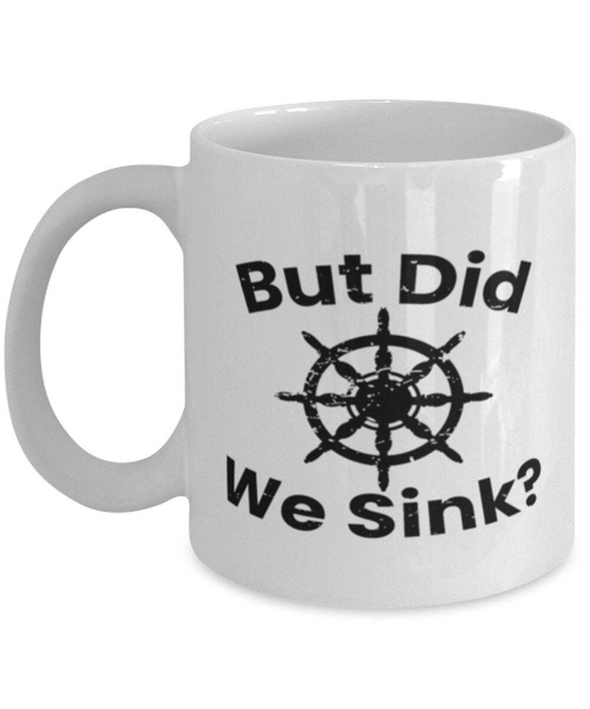 Sailor Funny Coffee Mug But Did We Sink? - White Coffee Mug Product Details.. This high quality 11oz. ceramic white mug has a premium hard coat that provides crisp and vibrant color reproduction sure to last for years. Perfect for all hot & cold beverages. The highest quality printing possible is used. It will never fade no matter how many times you wash it. Material: 100% Ceramic. Print both sides. Dishwasher and Microwave Safe. High Gloss + Premium White Finish. Printed in the U.S.A. Personalized & Custom. We support personalized and custom mug to add custom, when placing an order, you can add notes to the "order note" in shipping address section. Also you can contact us directly via message. Shipping Info. Ready to ship in 1 to 2 business days, All products are made-to-order and proudly printed in the United States. Shipped by USPS and DHL, You will receive your order in 5-7 days. Replace & Refund. All products are defective during shipping broken, chipped will be replaced free of charge. You are not satisfied with the product, we will refund 100% money to you. If any other issues arise, please do not hesitate to message, we would be more than happy to assist you.