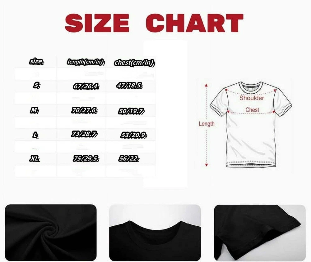 Cotton T-shirt is a type of T-shirt that has the advantages of breathability, sotness, comfot, coolness,sweat absorption, and heat dissipationIt is made from natural cotton, which is a very common plant fiber known for its excellent breathability and moisture absorption.Pure cottonT-shirts are not only suitable for dally casual wear, but can also be paired with different clothing to create a variety ofstyles, suitable for travein various occasions GusseaK Material: 100% cotton Collar:Regular crew neck with short sleeves Washing: Avoid using strong detergents to avoid affecting the texture and color of the clothesz .Suitable for sports party festivals Note: Please refer to our detailed size chart before you buy We try our very best to make sure every customer is completely satisfied. f there's a problem, message us! We're happy to helD.CAREINSTRUCTlONs: Please check size details in product description.lurmn garment inside out and wash cold /tumble dry on low temperatureseting/do not bleach directly ontheprint.
