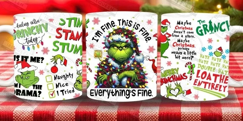 Enjoy your coffee in style with this funny and sarcastic Santa Grinch coffee mug. The 11 fl oz ceramic mug is perfect for all occasions, including Christmas, housewarming, retirement, and more. The round shape, with a height of 3.5 inches and a width of 4.5 inches, features a unique pattern of novelty and a modern style that is suitable for any coffee lover. This coffee mug is microwave safe, double-walled, decorated, dishwasher safe, and suitable for hot beverages. It comes with a set that includes one mug and is perfect for a service of one. The mug is white in color, with the Grinch and Christmas characters ad ding a festive touch.
