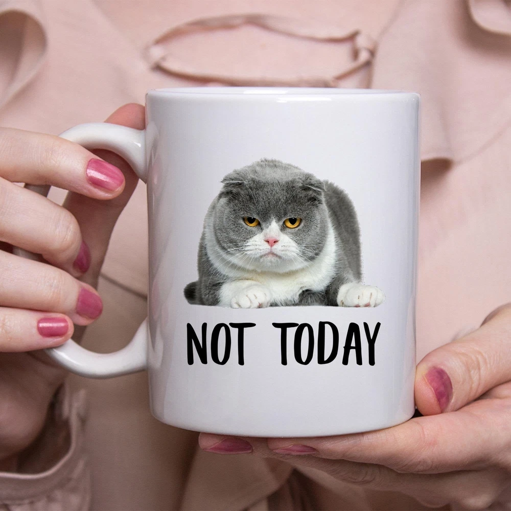 Funny Scottish Fold Cat Lilac Not Today Cat Mug Lazy Gift For Cats Lovers Coffee Product Details.. This high quality 11oz. ceramic white mug has a premium hard coat that provides crisp and vibrant color reproduction sure to last for years. Perfect for all hot & cold beverages. The highest quality printing possible is used. It will never fade no matter how many times you wash it. Material: 100% Ceramic. Print both sides. Dishwasher and Microwave Safe. High Gloss + Premium White Finish. Printed in the U.S.A. Personalized & Custom. We support personalized and custom mug to add custom, when placing an order, you can add notes to the "order note" in shipping address section. Also you can contact us directly via message. Shipping Info. Ready to ship in 1 to 2 business days, All products are made-to-order and proudly printed in the United States. Shipped by USPS and DHL, You will receive your order in 5-7 days. Replace & Refund. All products are defective during shipping broken, chipped will be replaced free of charge. You are not satisfied with the product, we will refund 100% money to you. If any other issues arise, please do not hesitate to message, we would be more than happy to assist you.
