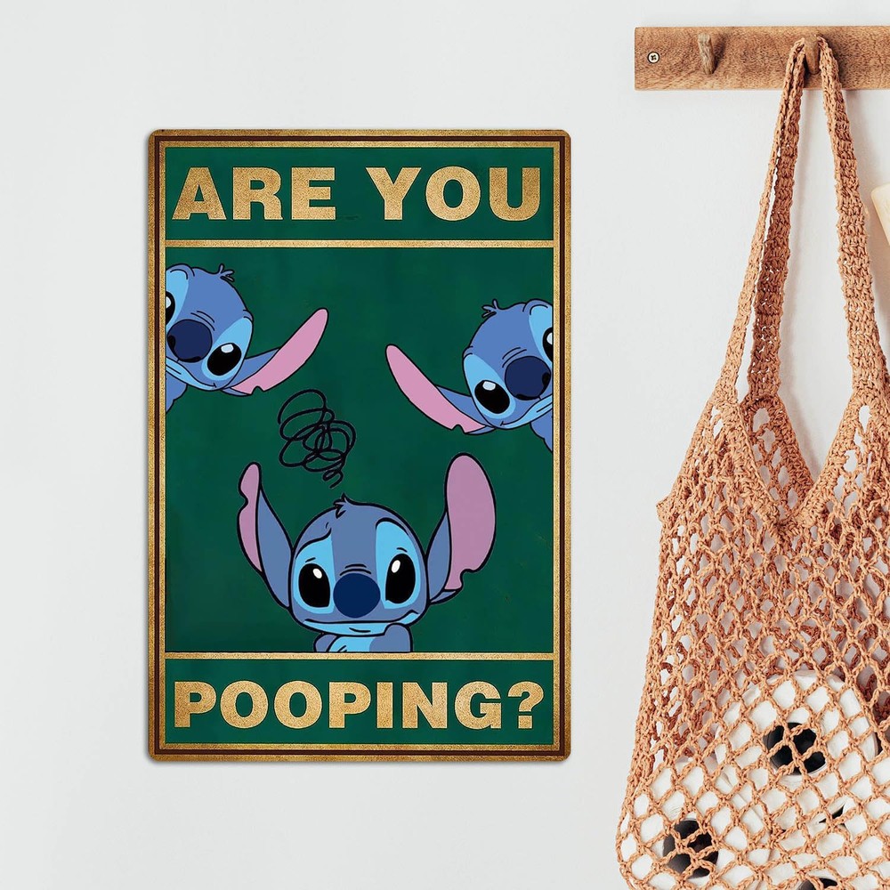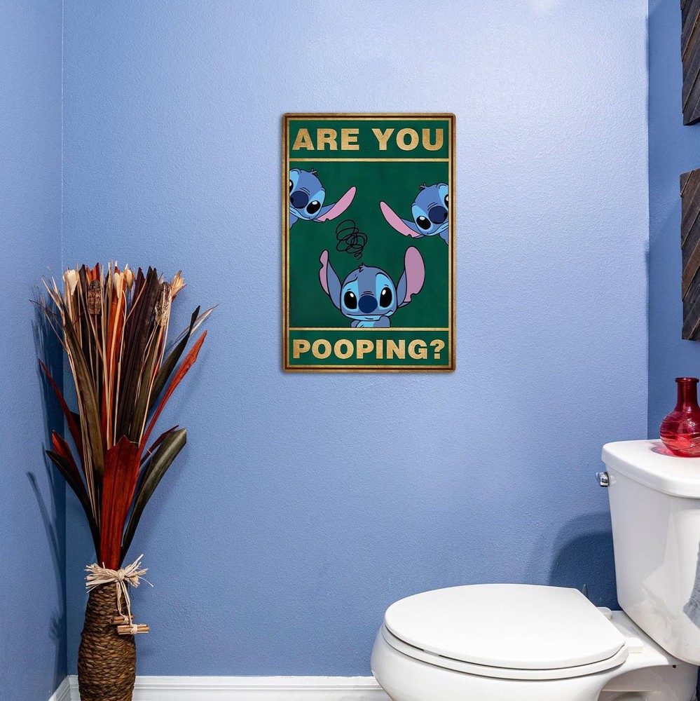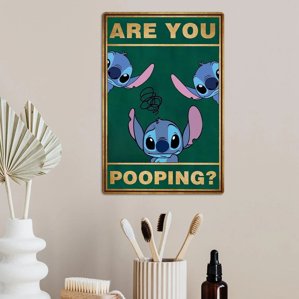 1. This hilarious Stitch bathroom sign adds a playful touch to any space! The durable metal design with vibrant colors looks great, and the cheeky "Are you Pooping?" text never fails to get a laugh from guests. Perfect for adding fun to bathrooms, game rooms, or dorms. The lightweight yet sturdy build makes it easy to hang, and the retro art deco style gives it extra charm. A must-have for Disney fans or anyone who loves quirky decor!