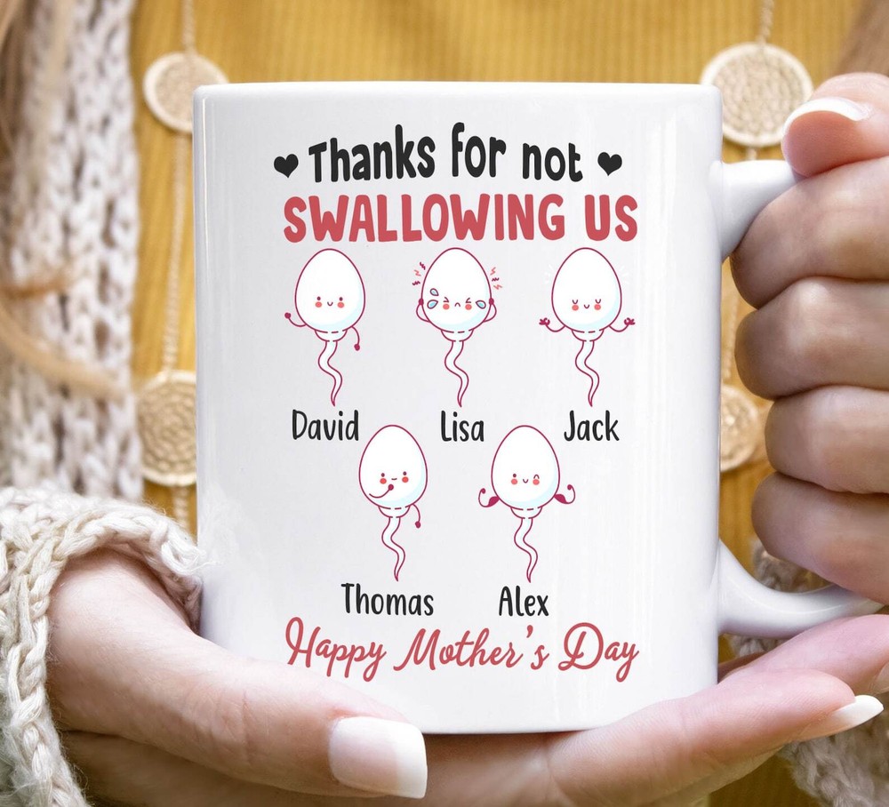 Thanks For Not Swallowing Us Mug Mothers Day Gifts Product Details.. This high quality 11oz. ceramic white mug has a premium hard coat that provides crisp and vibrant color reproduction sure to last for years. Perfect for all hot & cold beverages. The highest quality printing possible is used. It will never fade no matter how many times you wash it. Material: 100% Ceramic. Print both sides. Dishwasher and Microwave Safe. High Gloss + Premium White Finish. Printed in the U.S.A. Personalized & Custom. We support personalized and custom mug to add custom, when placing an order, you can add notes to the "order note" in shipping address section. Also you can contact us directly via message. Shipping Info. Ready to ship in 1 to 2 business days, All products are made-to-order and proudly printed in the United States. Shipped by USPS and DHL, You will receive your order in 5-7 days. Replace & Refund. All products are defective during shipping broken, chipped will be replaced free of charge. You are not satisfied with the product, we will refund 100% money to you. If any other issues arise, please do not hesitate to message, we would be more than happy to assist you.